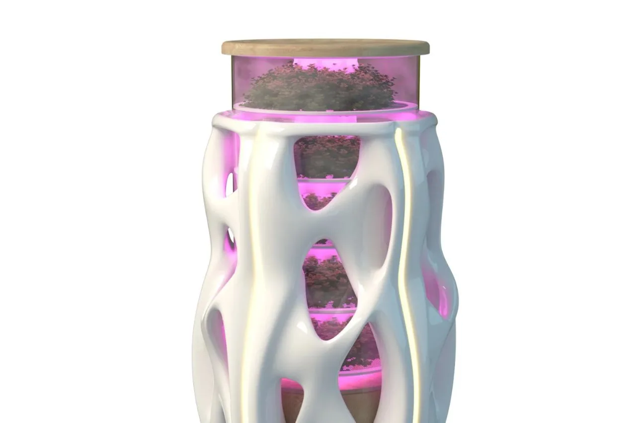На фото визуализация проекта Алины Петуховой по созданию компактного и автоматизированного устройства для выращивания овощей и микрозелени методом аэропоники.