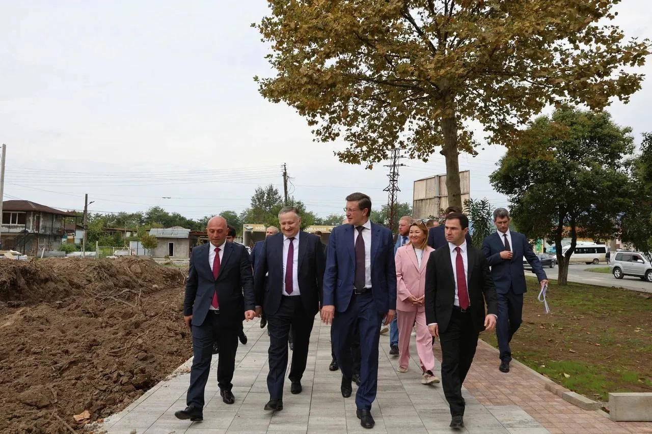 Сергей Кириенко и Глеб Никитин ознакомились с ходом работ по благоустройству сквера в столице Абхазии