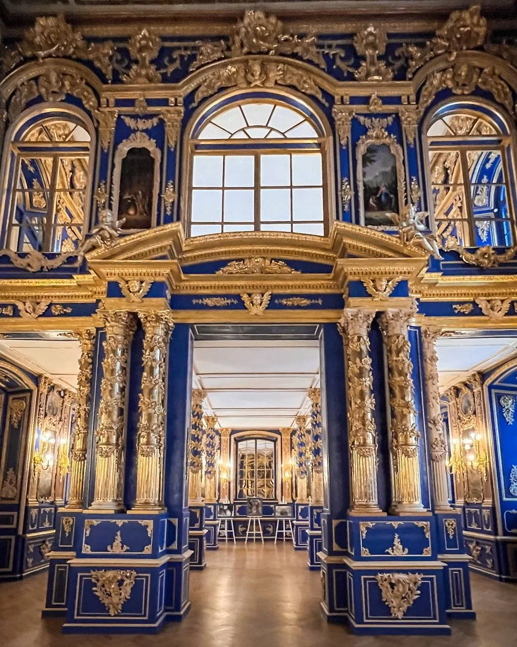 Придворная Воскресенская церковь — скрытая жемчужина Екатерининского дворца в Царском Селе. Её возвели в середине XVIII века по проекту Бартоломео Франческо Растрелли — мастера пышного елизаветинского барокко. И да, здесь барокко не просто «пышное» — оно торжествующее.