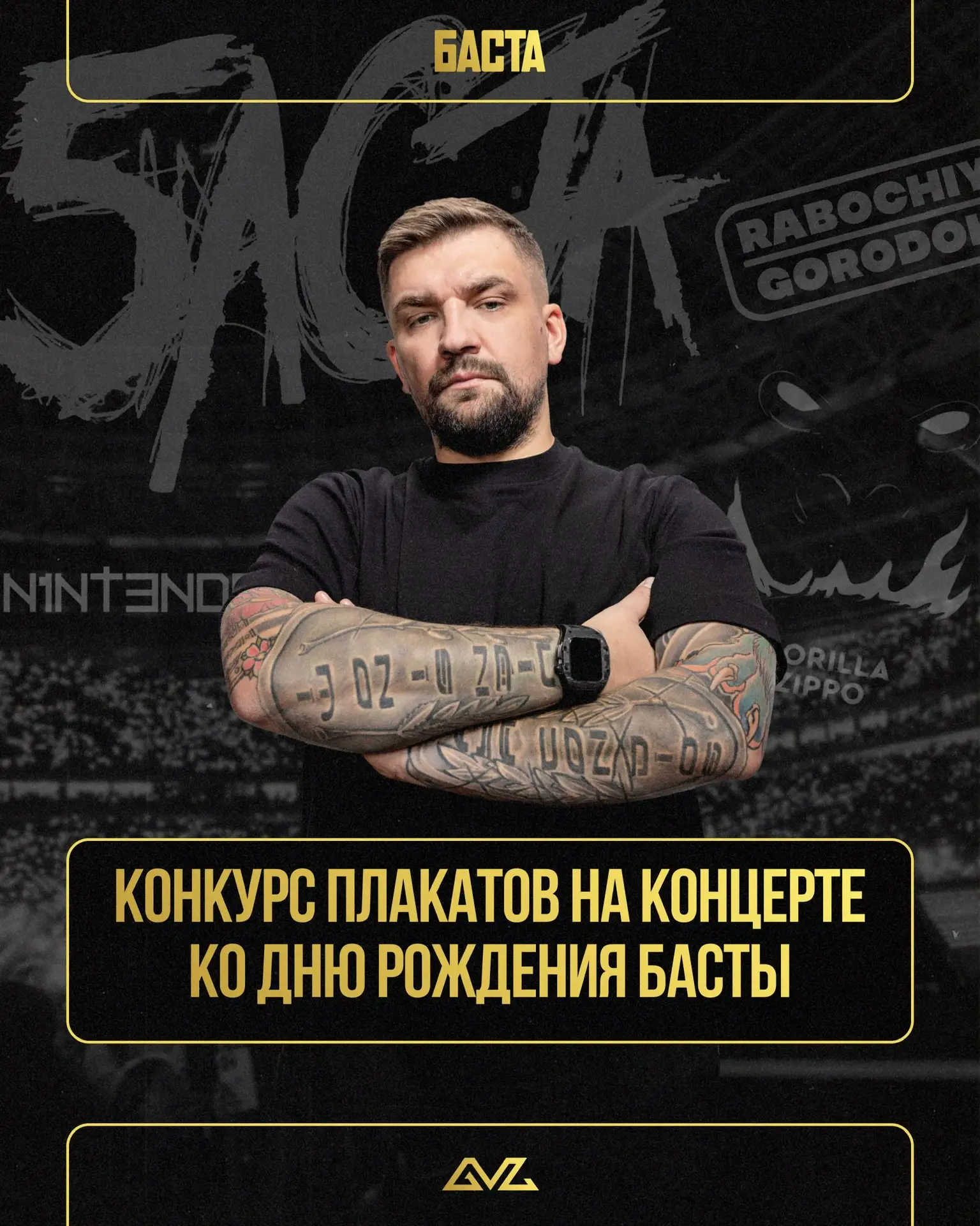 Приходите 19 числа на концерт Басты ко дню его рождения в «Атмосфере» с плакатами! Разыгрываем встречу с Бастой, билеты на концерт в Лужниках и мерч