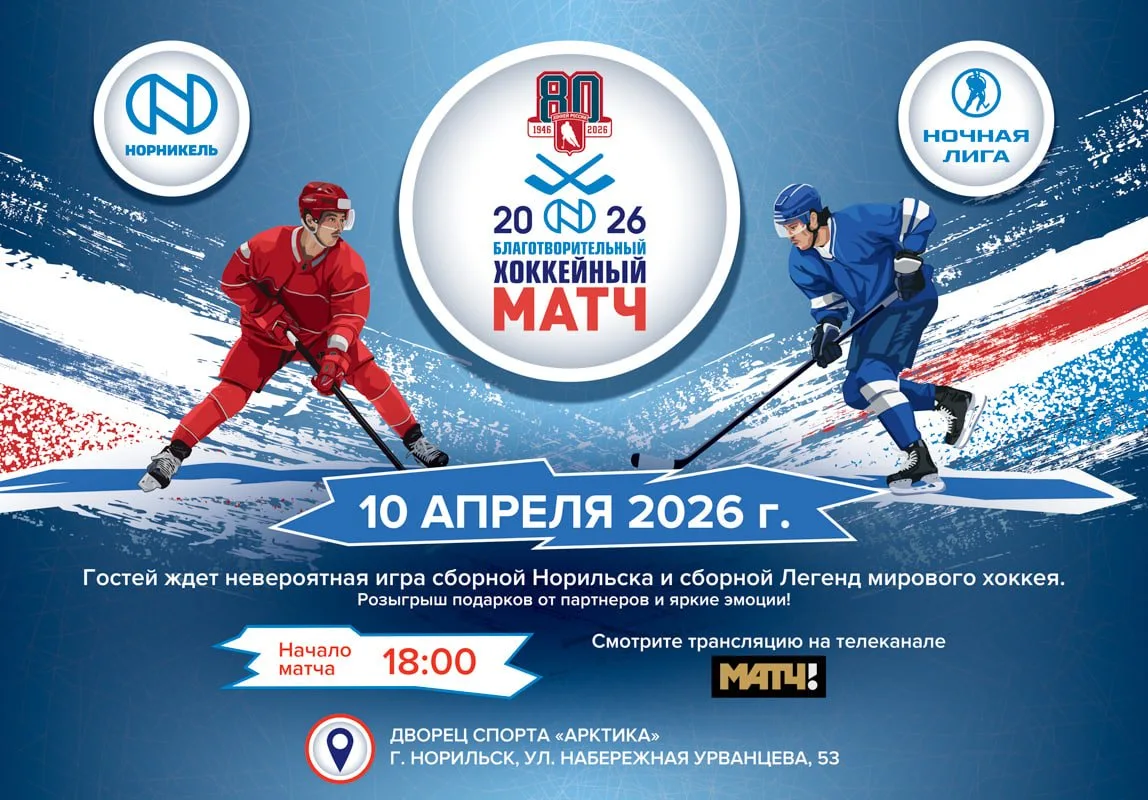 Билеты распространяются за добровольные пожертвования. Компания «Норникель» удваивает собранную сумму, и все средства направят на развитие спортивной инфраструктуры для воспитанников хоккейных школ Заполярья.