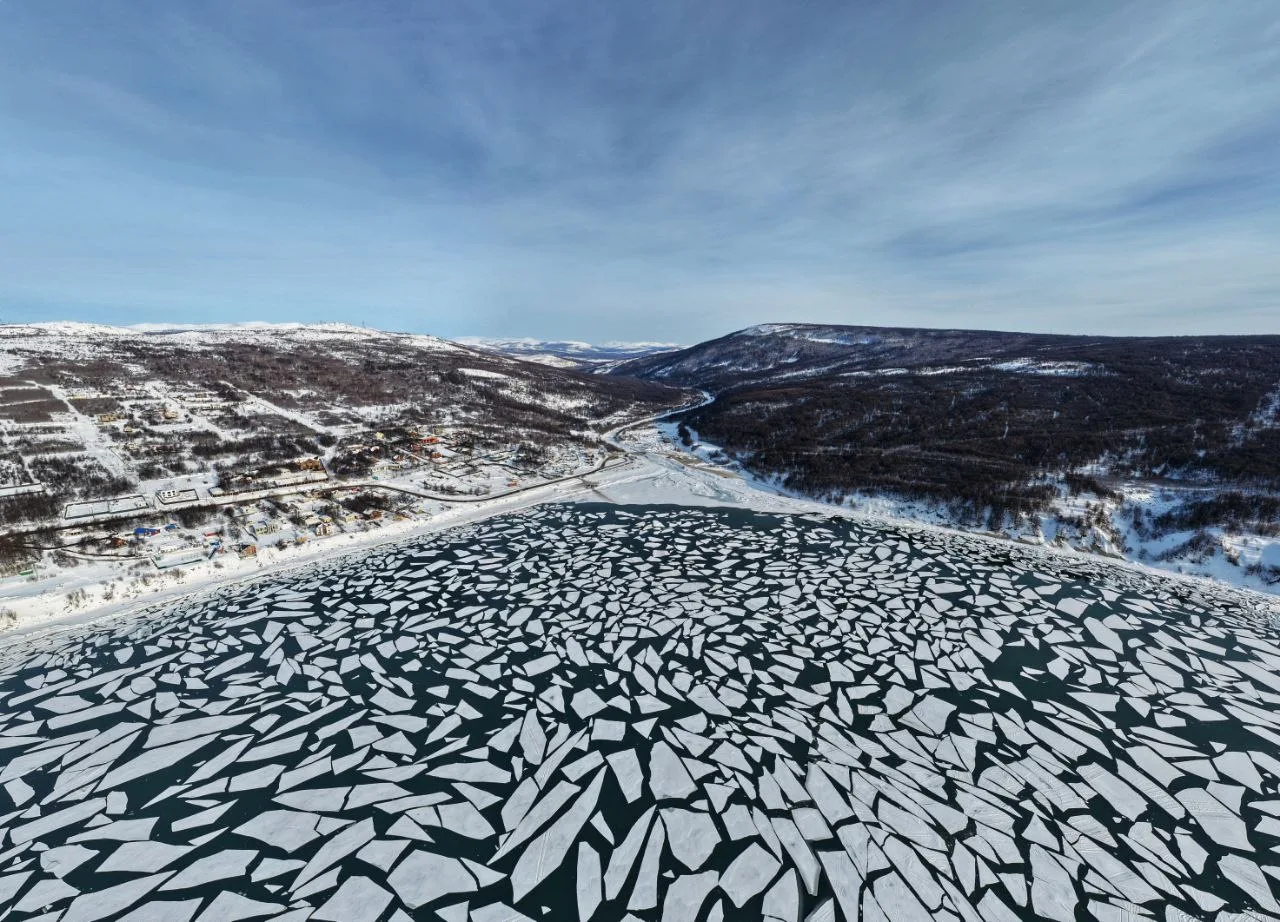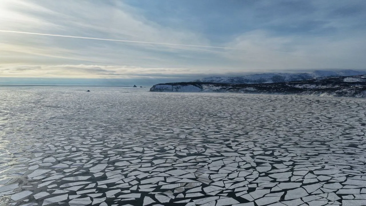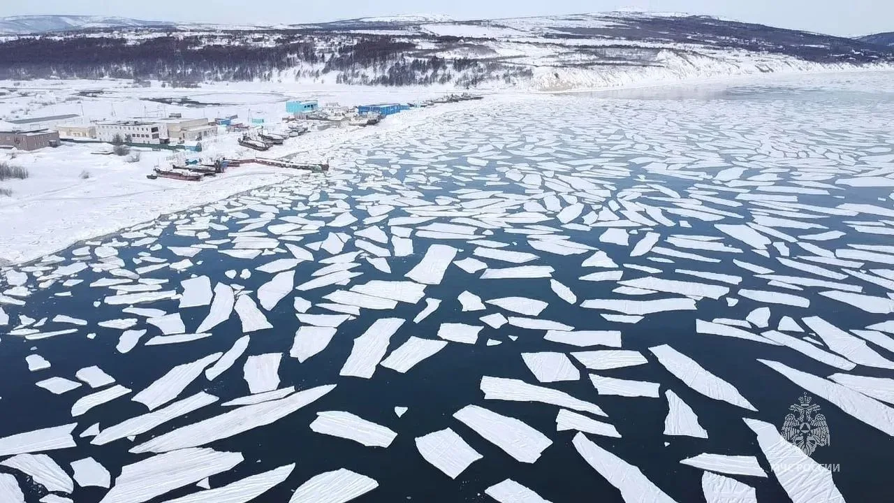 Порывистый ветер, большие перепады воды между приливами и отливами стали причиной разлома ледового поля в бухте Гертнера.