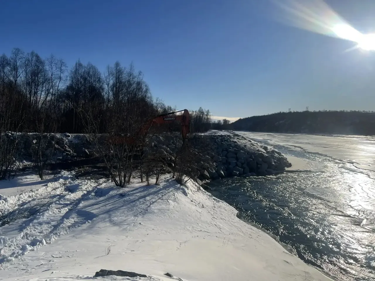 🔹 На реке Ола был проведен ремонт участка дамбы.