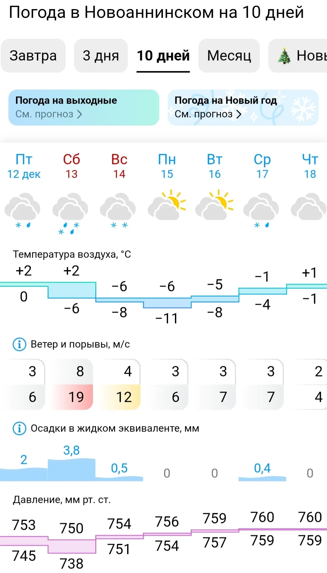 15.12.2025 без существенных осадков, ветер северо-западный 8-13 м/с.