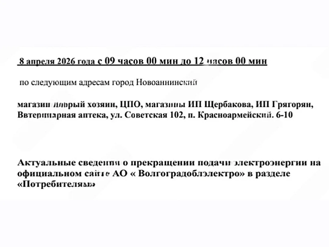 ⚡️Внимание! Отключение электроэнергии в Новоаннинском☝️