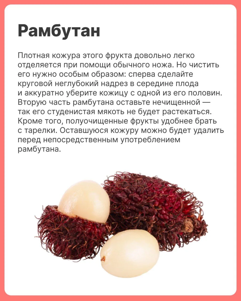 Экзотические фрукты привлекают взгляды своим ярким цветом и необычной формой — рука так и тянется взять их с магазинной полки. Правда, не все знают, как именно нужно очищать эти фрукты, привезённые из далёких стран.