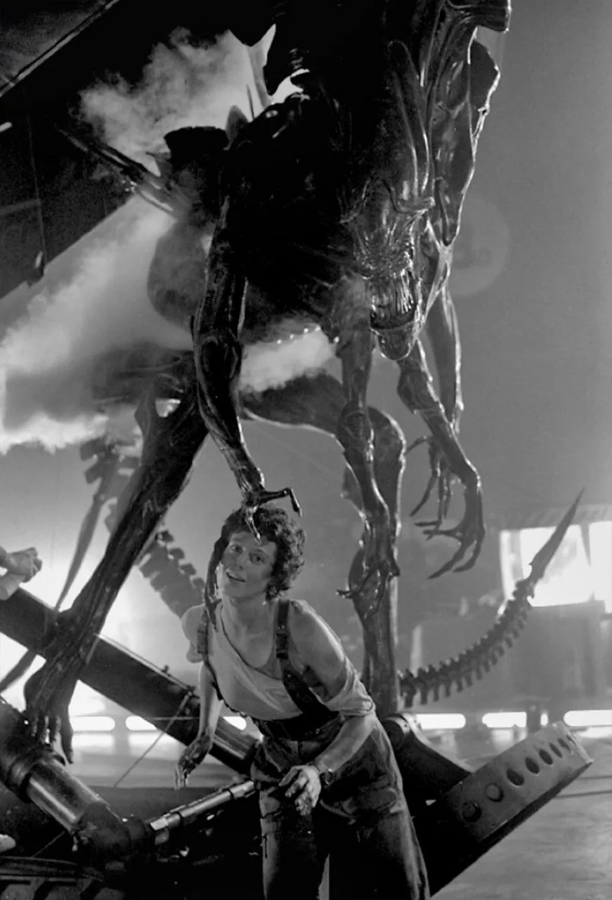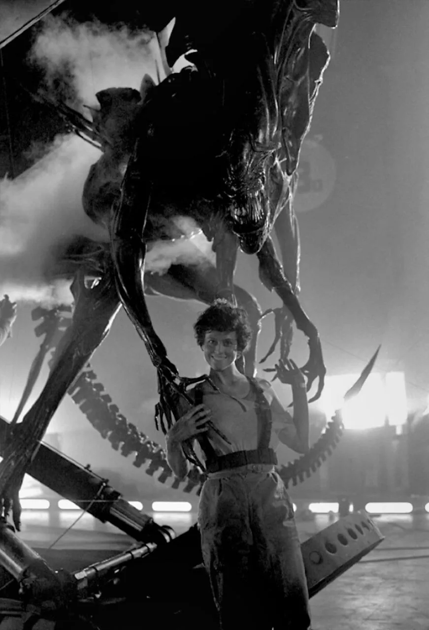 Вдогонку к предыдущему посту — Сигурни Уивер на съемках фильма «Чужой», фотографии 1986 года.