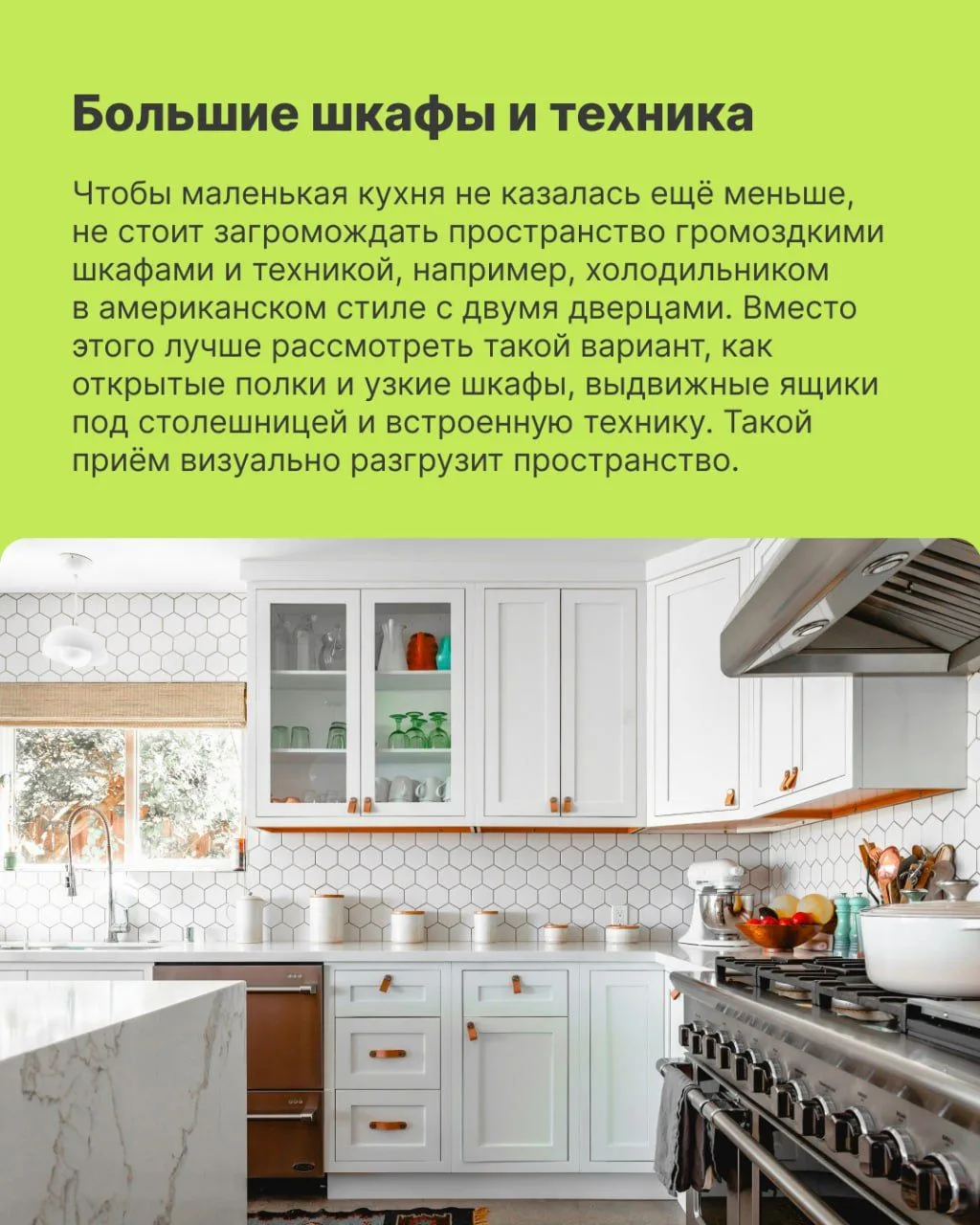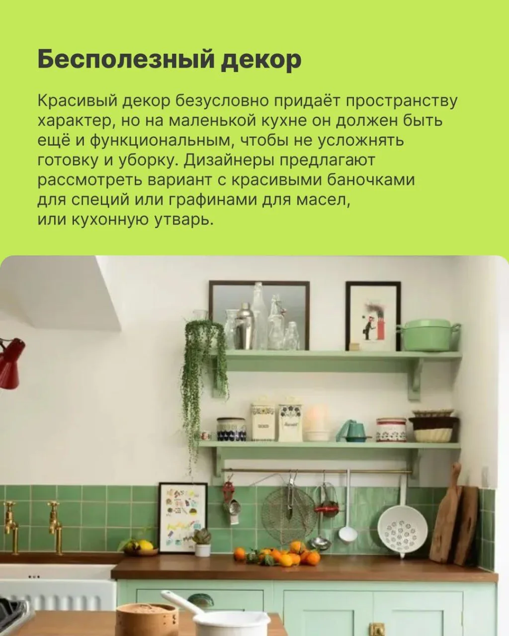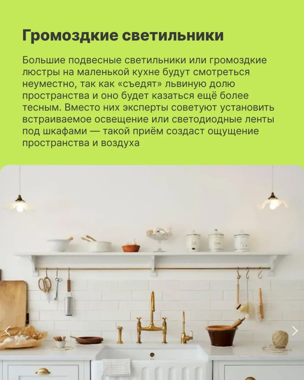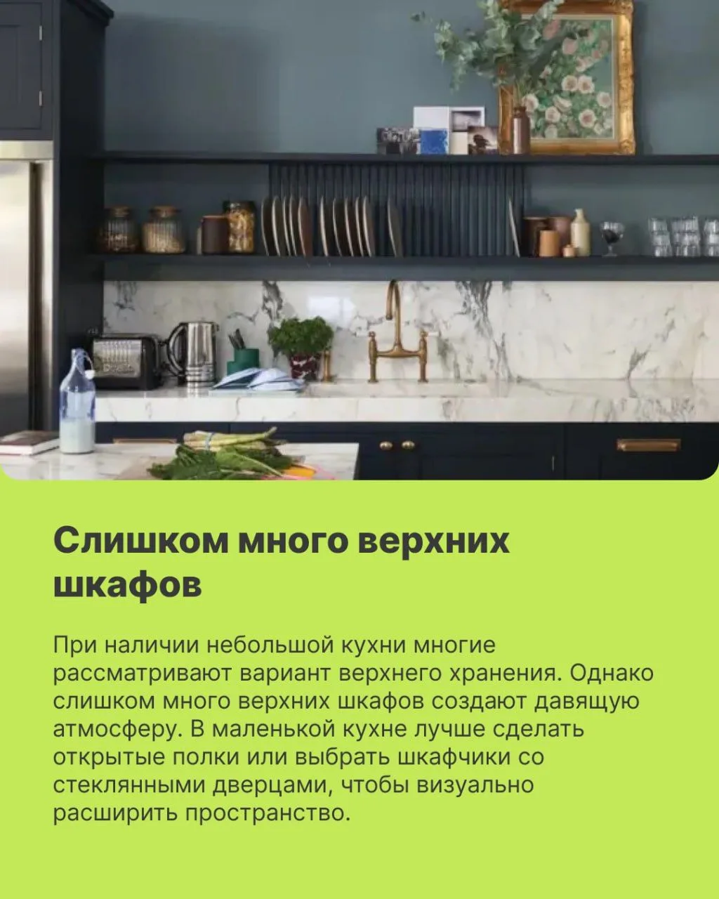 В карточках рассказываем, от чего лучше отказаться, чтобы кухня стала уютнее и функциональнее.