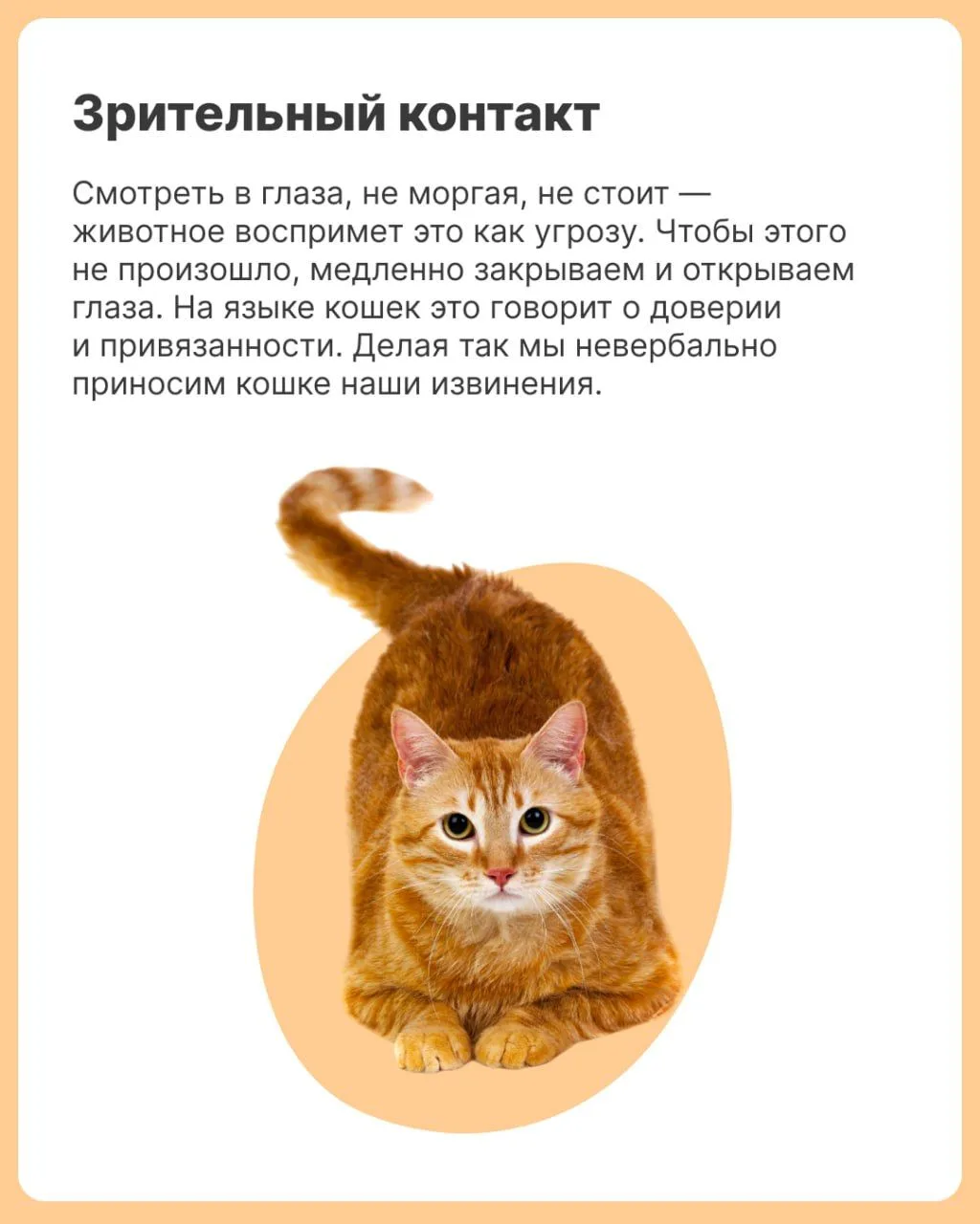 🫶 Кошки любят, когда к ним прислушиваются. И желательно это делать, если вы заинтересованы установить с питомцем контакт. Конечно, закатить длинный монолог на тему: как вы её достали и что она о вас думает, кошка не может. Но она вполне способна объяснить вам языком тела, какие эмоции она испытывает. И если вы будете игнорировать её знаки, кошка вряд ли будет искать общения с вами. Это же будет разговор глухого с немым...