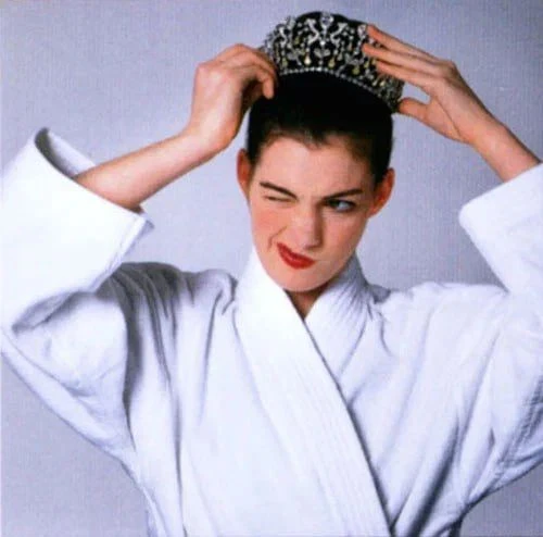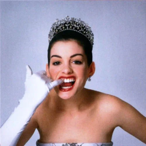 Прекрасная Энн Хэтэуэй на промо-фото к фильму «Как стать принцессой», 2001 год.