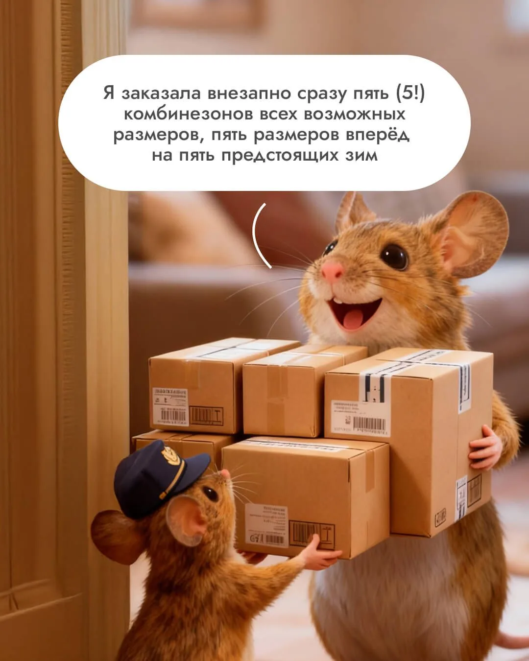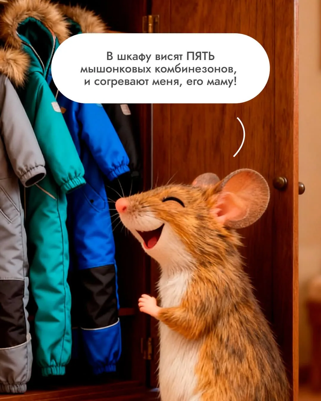 У мышки Сюзи двое мышат — дочь и сын. И если старшая уже в том возрасте и размере, когда зимней верхней одежды хватает на пару сезонов (и вообще комбинезоны она не носит теперь), то младший все еще растет стремительно. Его скорость роста — по комбинезону в год. Или даже по два — зимний и демисезонный.