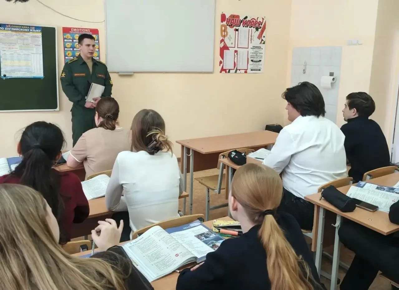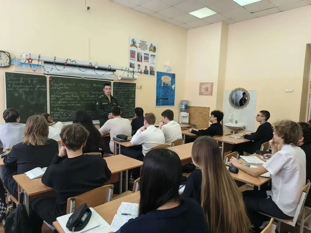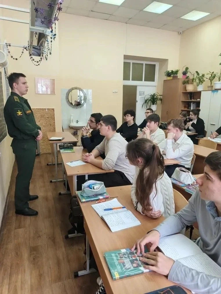 Перед учениками 9-х и 11-х классов выступил курсант академии Юдин Дмитрий. Он подробно рассказал о специфике обучения в одном из ведущих военных вузов Минобороны России, который готовит высококлассных специалистов в области связи и информационных технологий для Вооружённых Сил.
