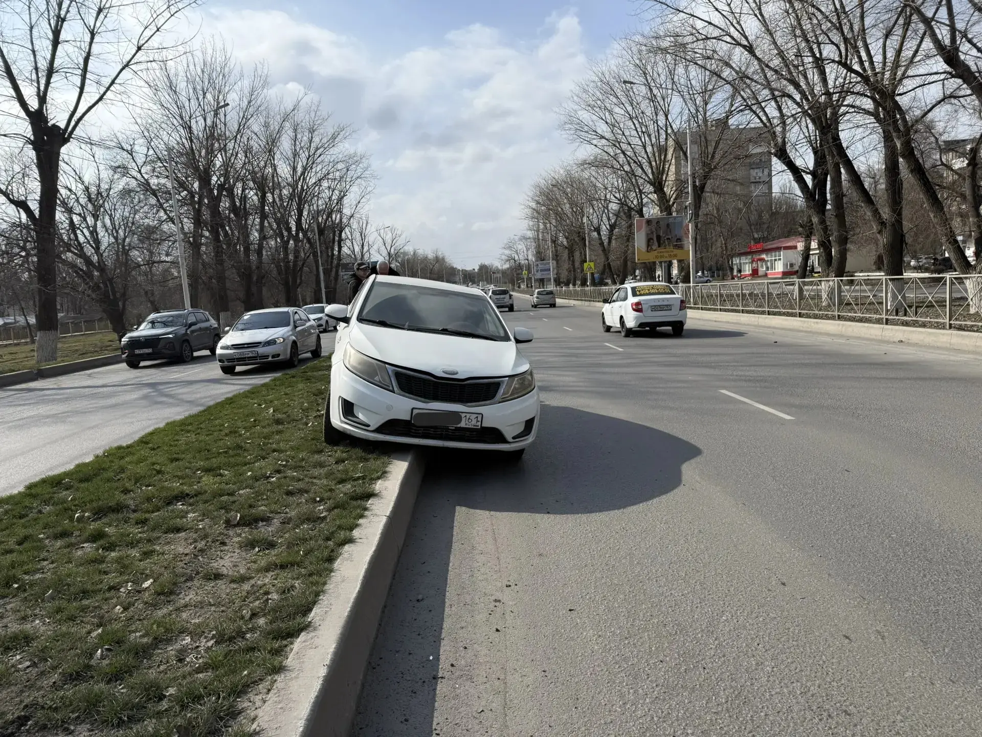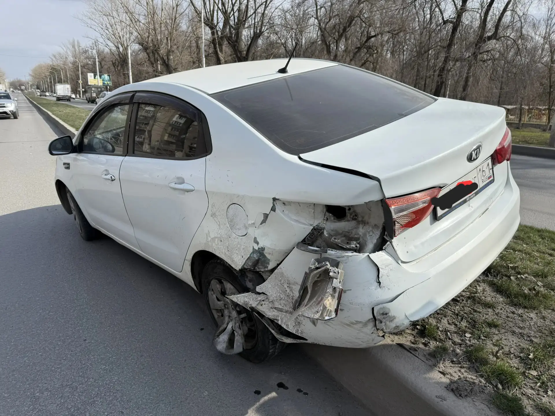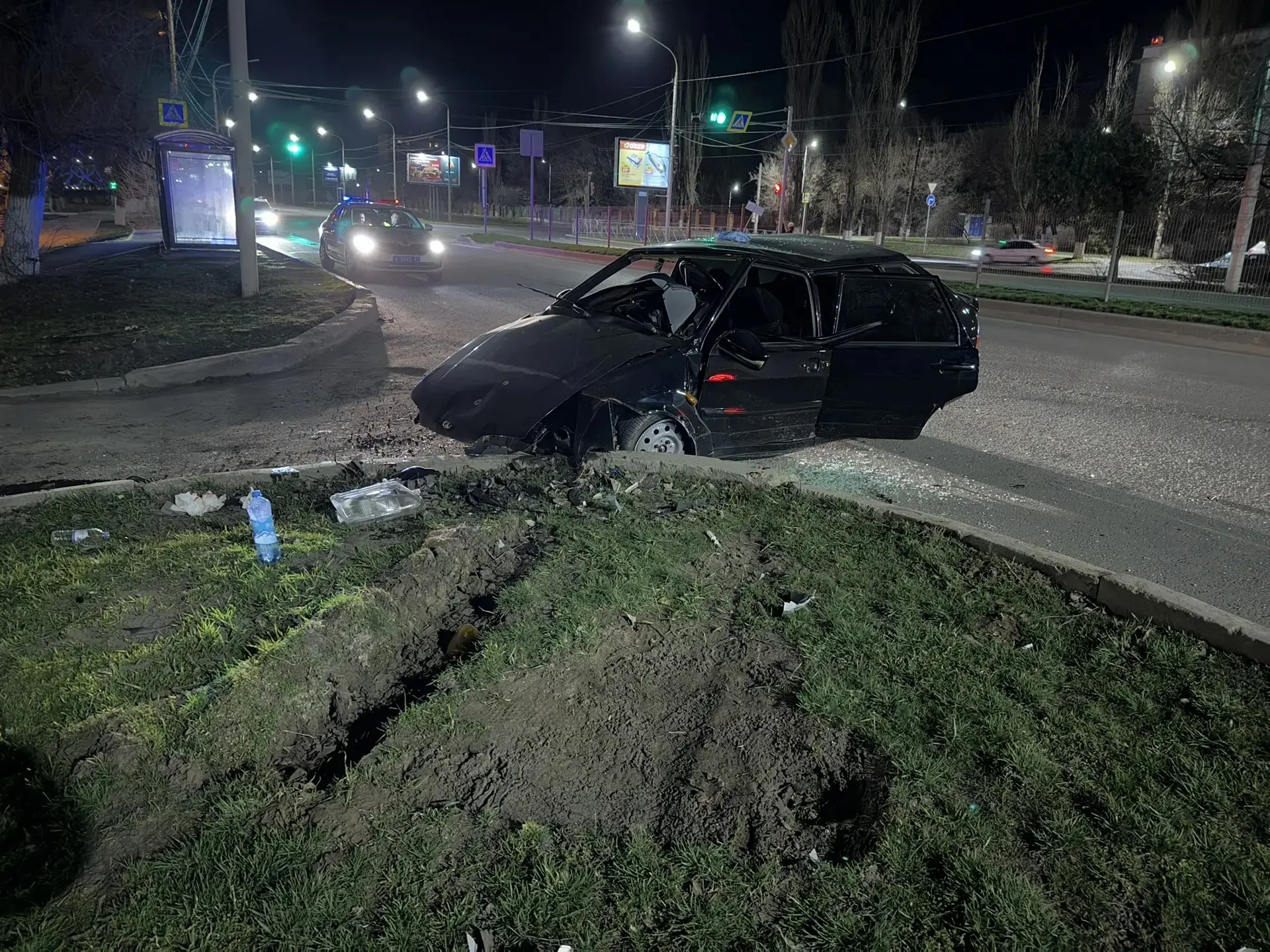 Неизвестный (скорее всего не очень адекватный) водитель на пр. Баклановском буквально снёс с дороги автомобиль Киа и скрылся с места ДТП.