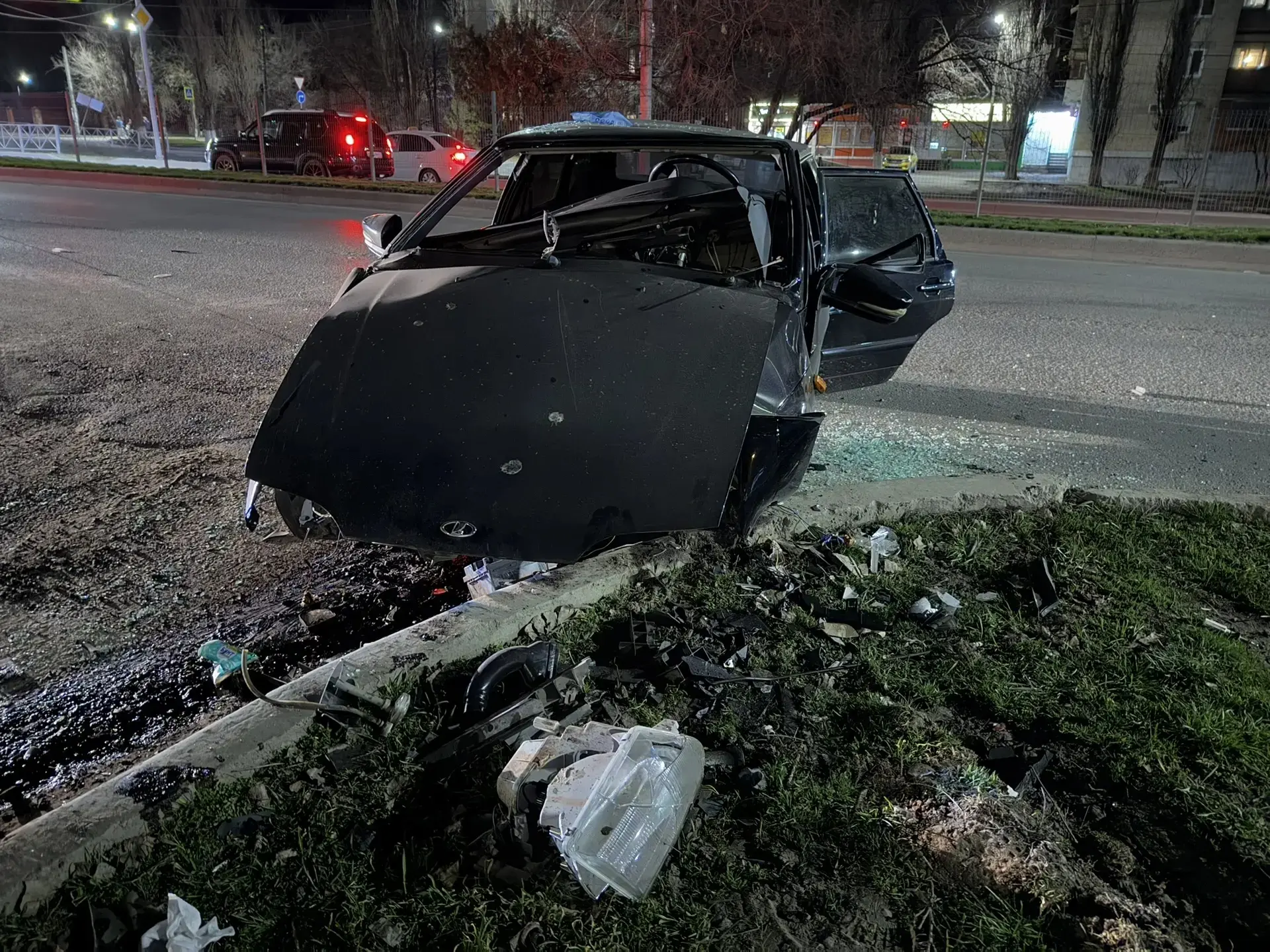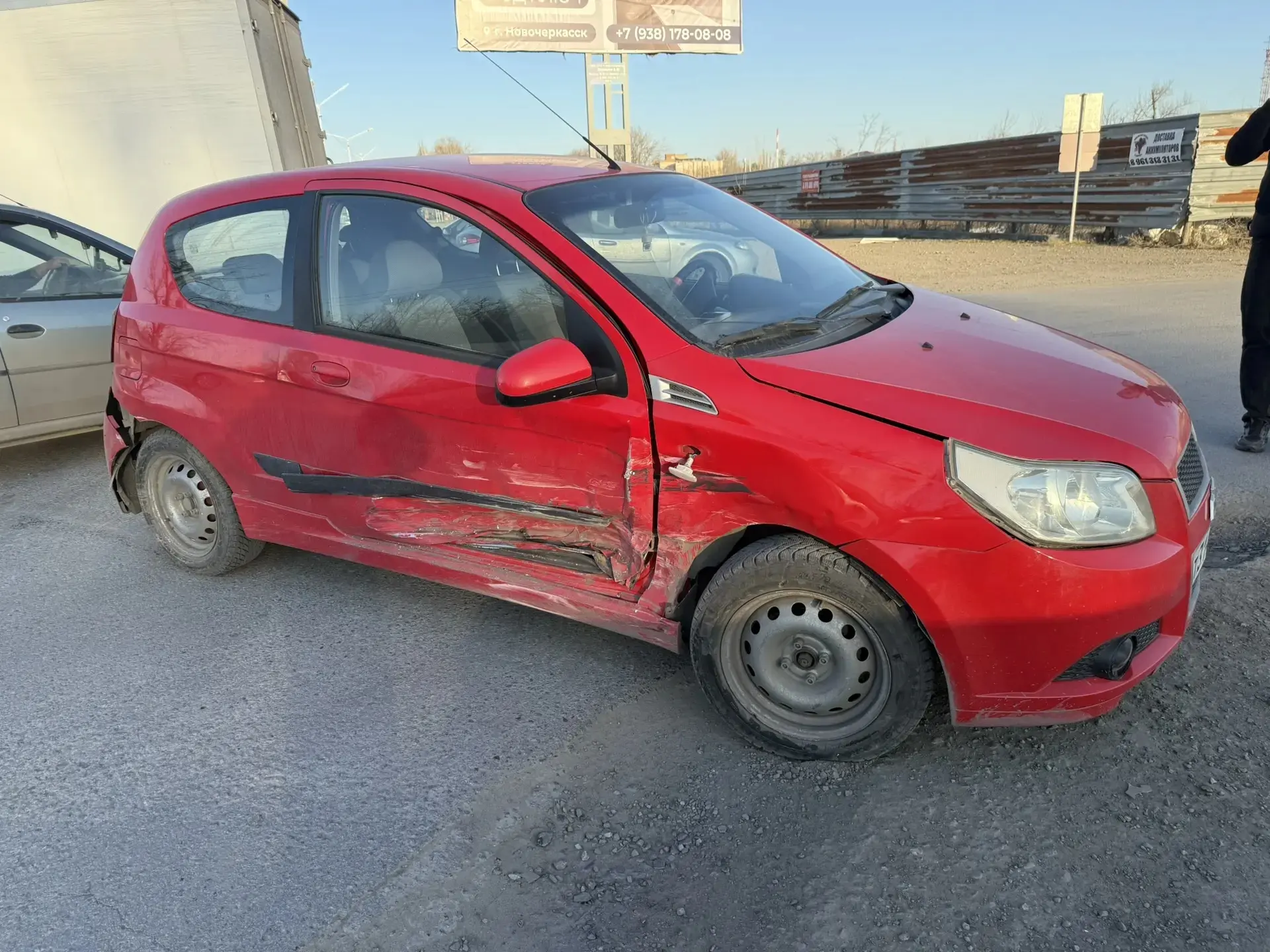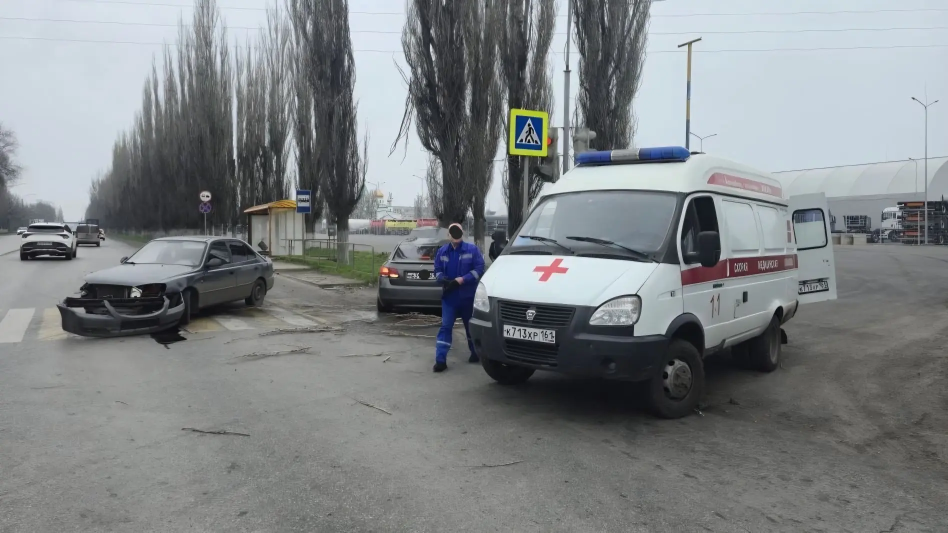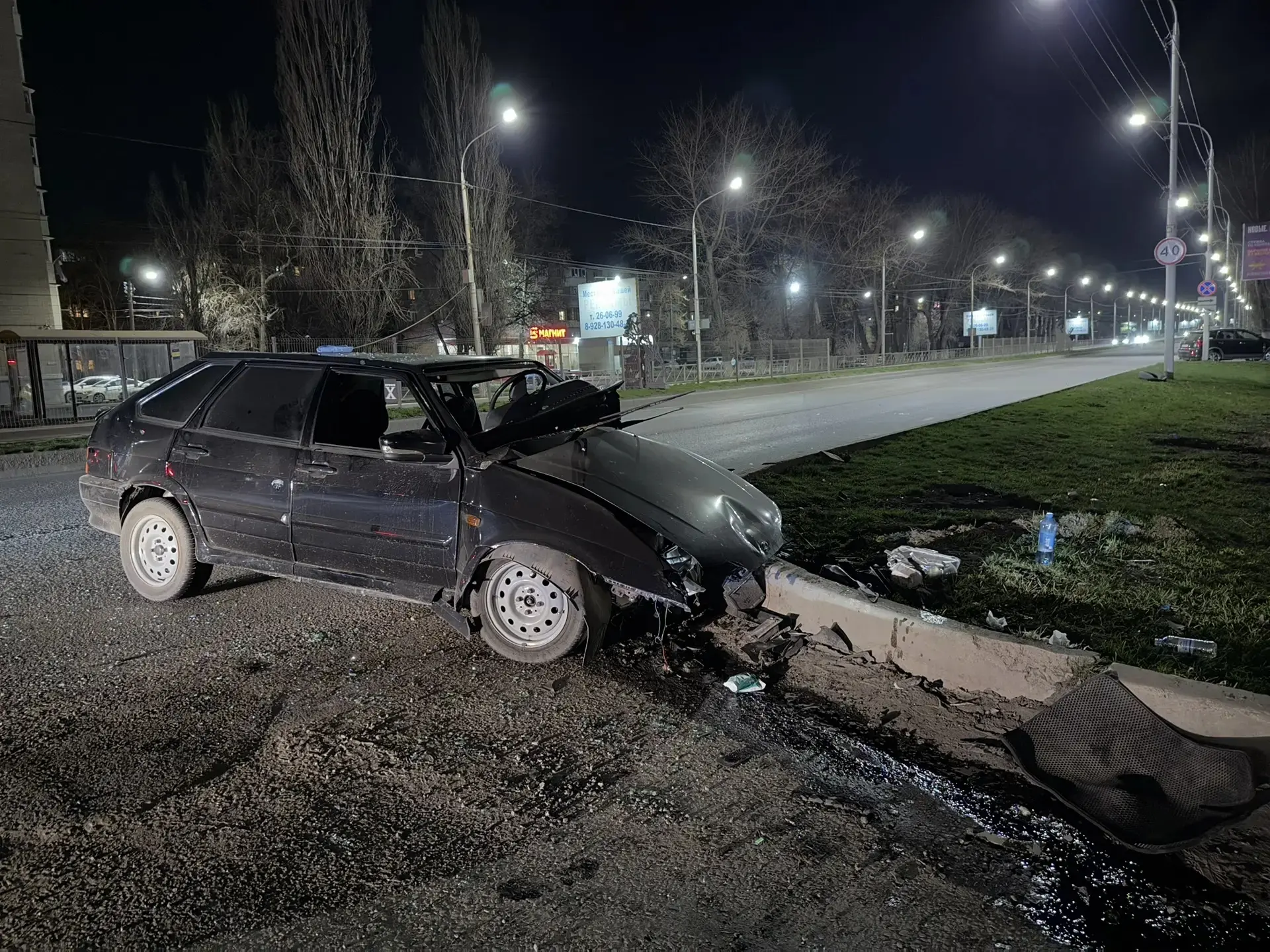 Неизвестный (скорее всего не очень адекватный) водитель на пр. Баклановском буквально снёс с дороги автомобиль Киа и скрылся с места ДТП.