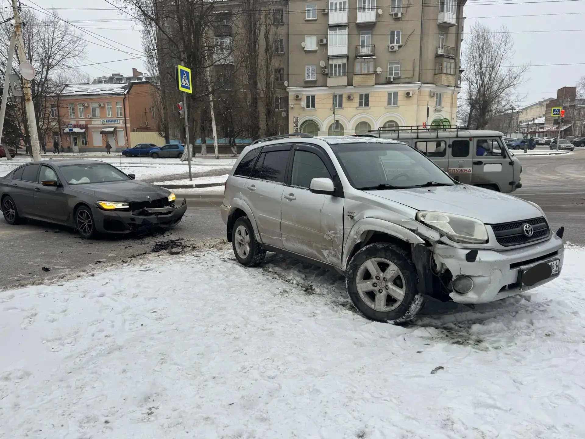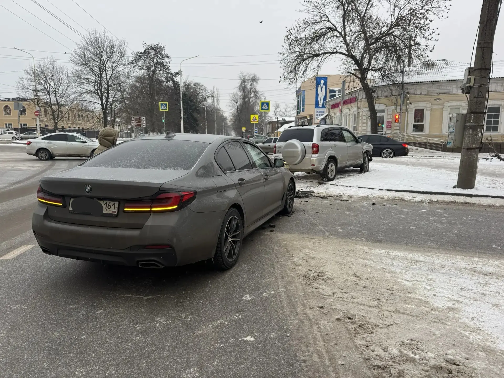 Ярким примером стала авария на перекрёстке улиц Луначарского и Гагарина. Водитель кроссовера не смог вовремя затормозить на скользкой дороге и совершил столкновение с автомобилем «ВАЗ-2106», который остановился перед перекрёстком.