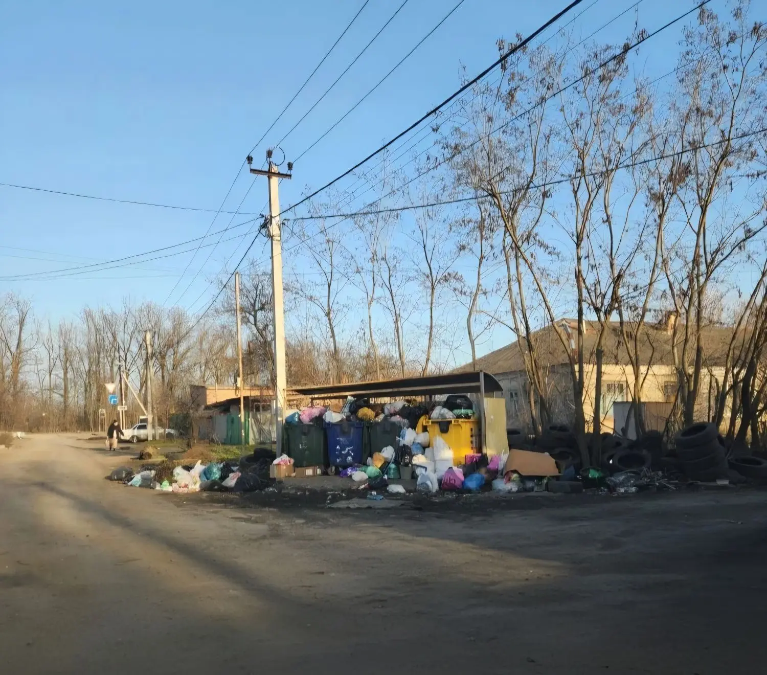 Контейнерная площадка на 8 Марта выглядит совершенно типично для Новочеркасска. За исключением опасно заваленного мусором трансформатора, конечно.