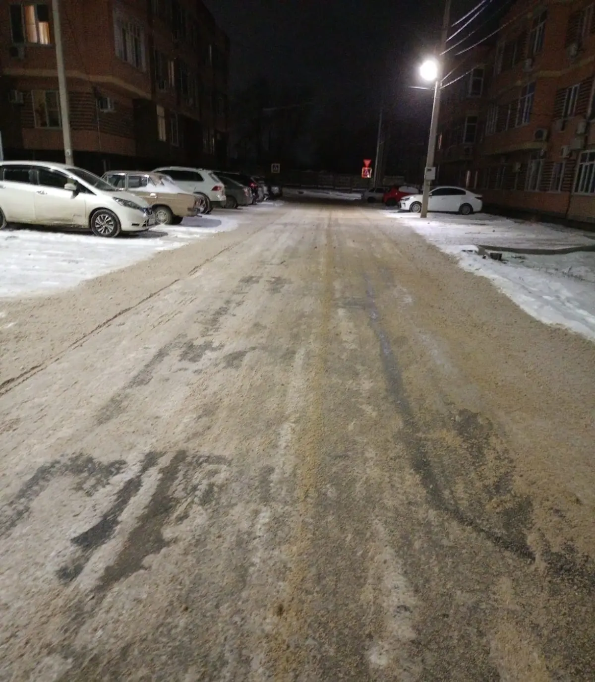 ГИБДД призывает водителей быть осторожнее на подмороженных дорогах. А муниципальная техника в Новочеркасске всю ночь и всё утро занимается отсылкой дорог.