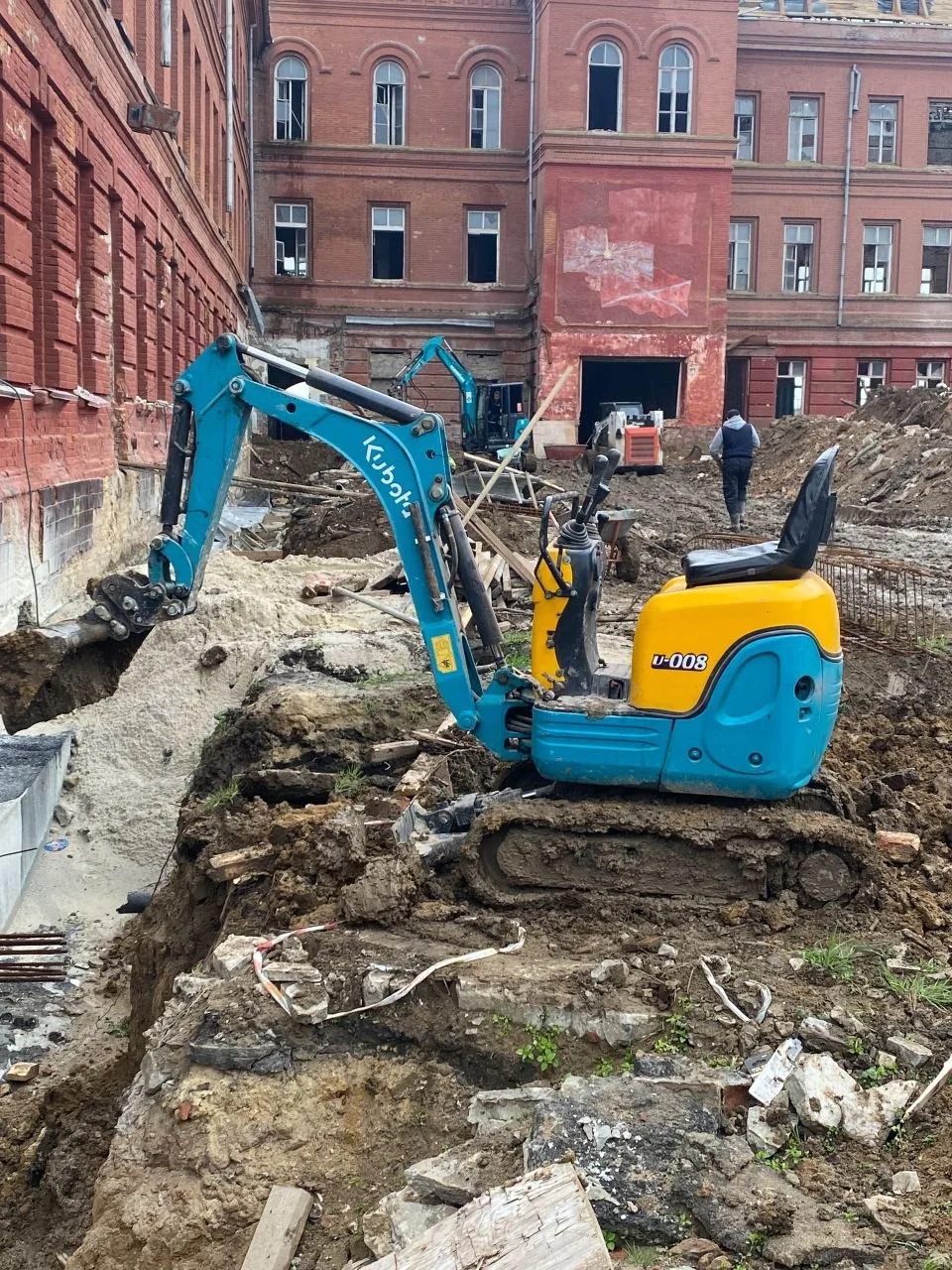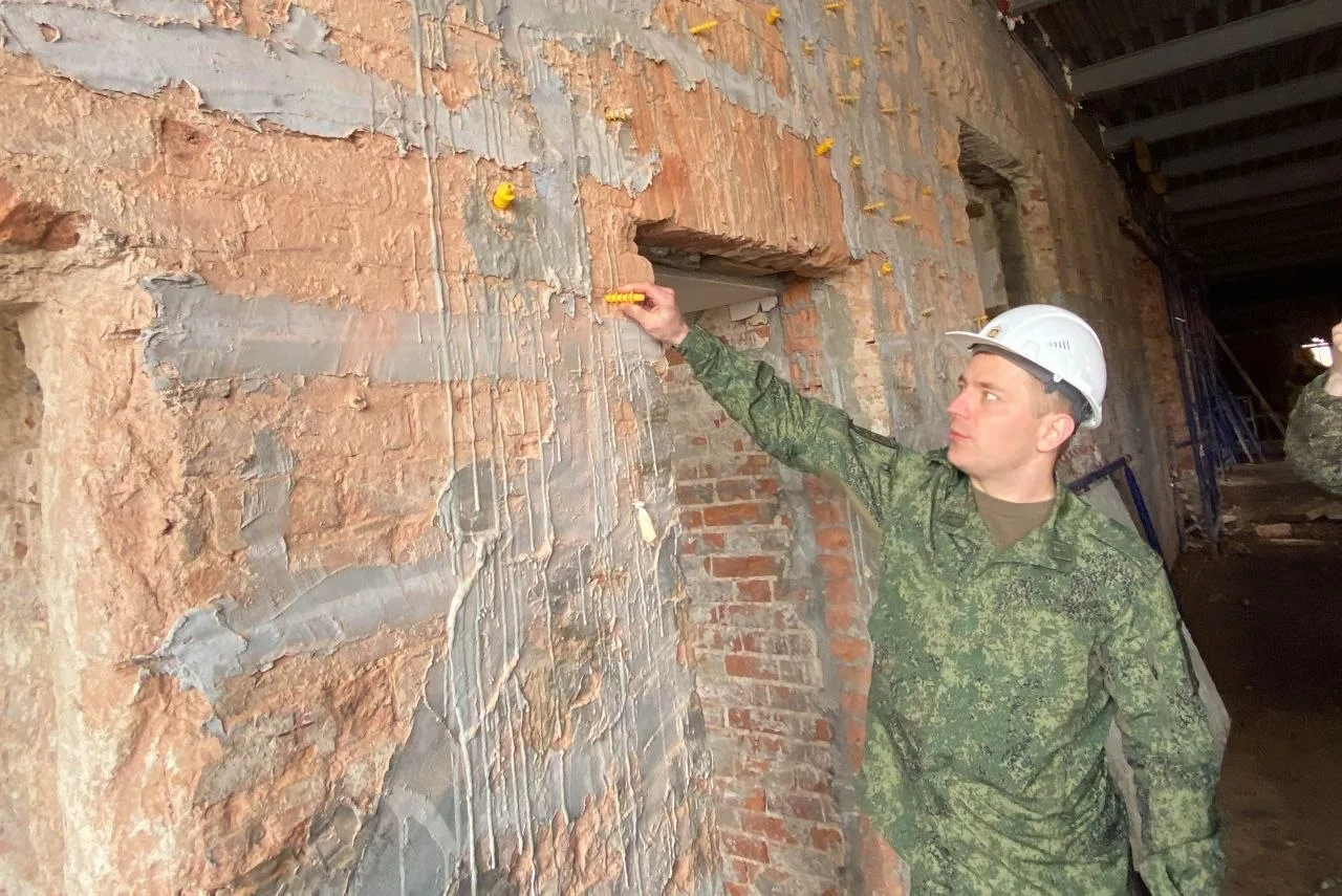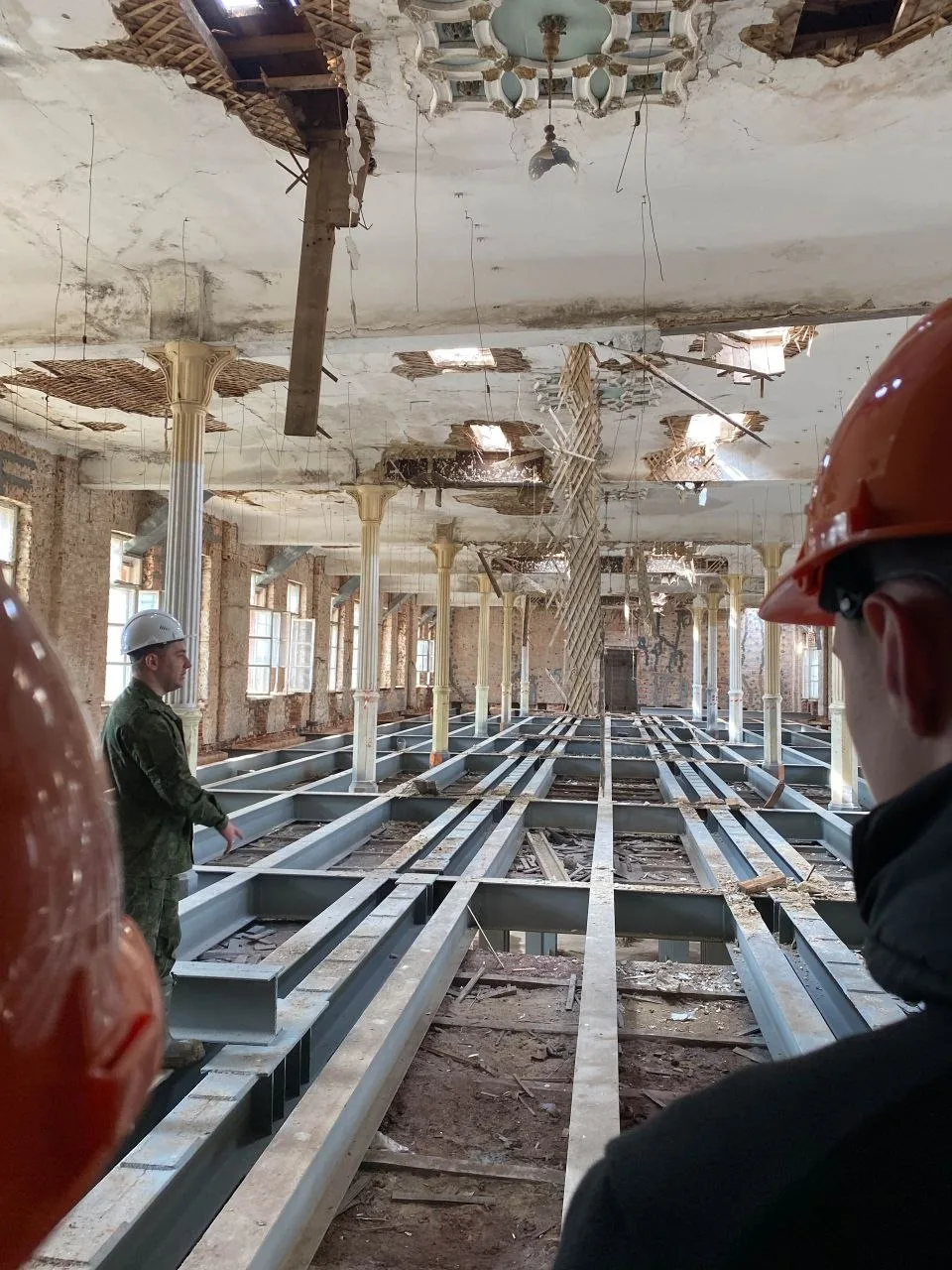 Студенты узнали, что задача строителей существенно усложнилась: помимо замены перекрытий, кровли, стропильной системы, усиления и ремонта стен возникла необходимость усиления фундаментов здания.