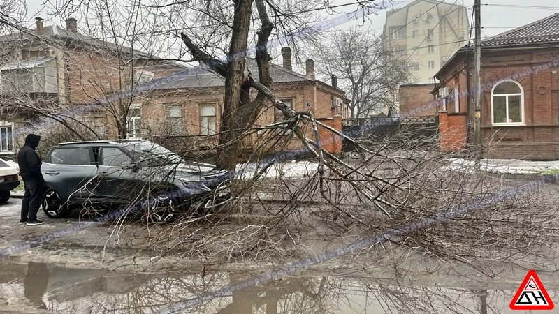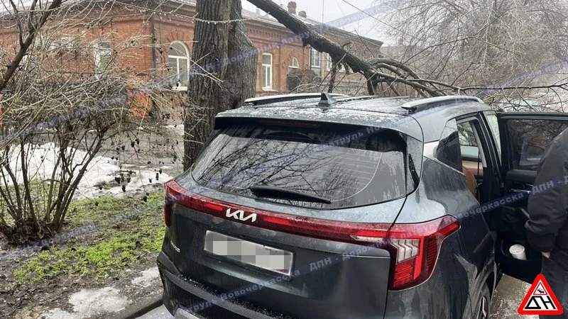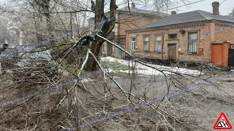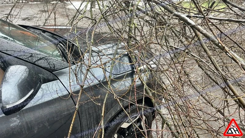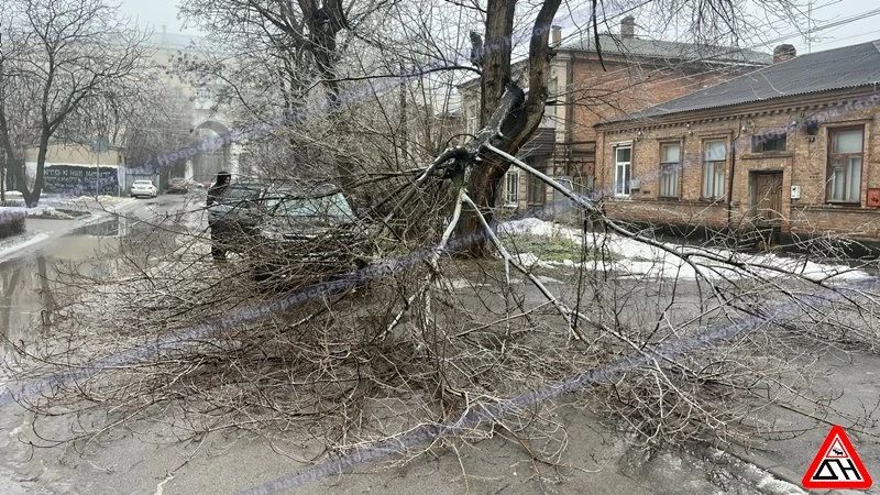 Улица Троицкая. Дерево упало на припаркованный "Киа".