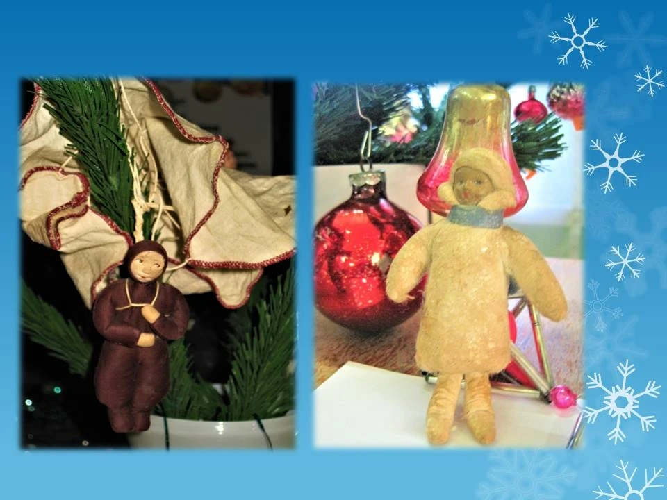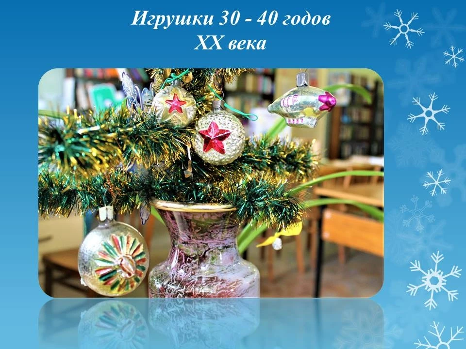 На выставке представлена коллекция винтажных ёлочных украшений, собранная благодаря сотрудникам библиотеки и дарам жителей города. Среди экспонатов — редкие довоенные игрушки 30–40-х годов, фигурки из ваты и прессованных опилок 50-х годов, картонные зверушки, стеклянные бусы и украшения в стилистике советской эпохи. Каждый предмет отражает дух своего времени и рассказывает историю новогодних традиций прошлого века.