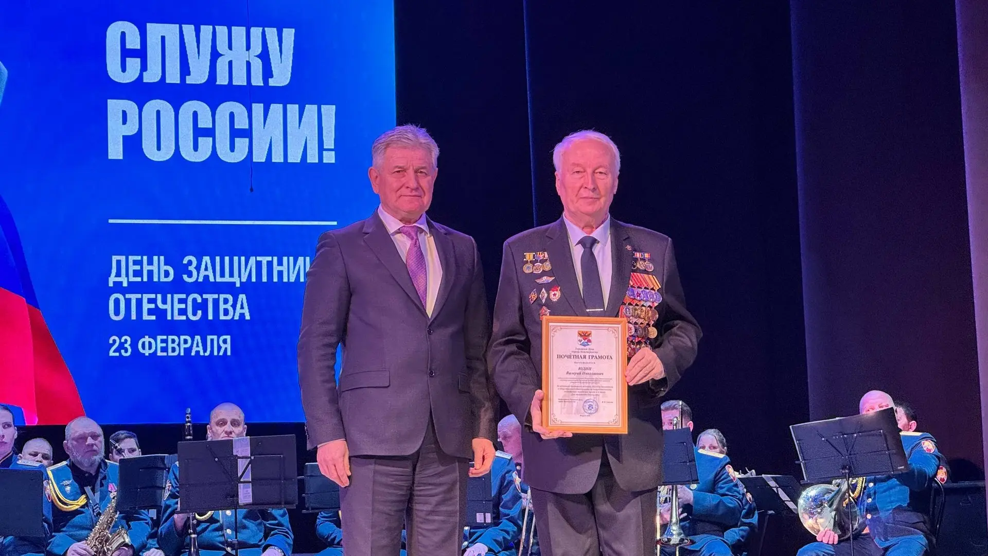 Ветеранам Вооружённых сил и участникам СВО вручили почётные грамоты администрации и городской Думы за службу и мужество.