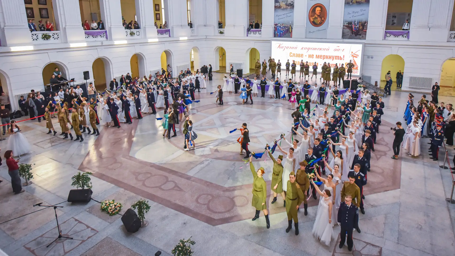 В Крытом дворе Южно-Российского государственного политехнического университета имени Платова состоялся традиционный казачий кадетский бал. Мероприятие, прошедшее под девизом «Славе — не меркнуть. Традициям — жить!», было посвящено 80-летию Победы в Великой Отечественной войне и Году защитника Отечества.