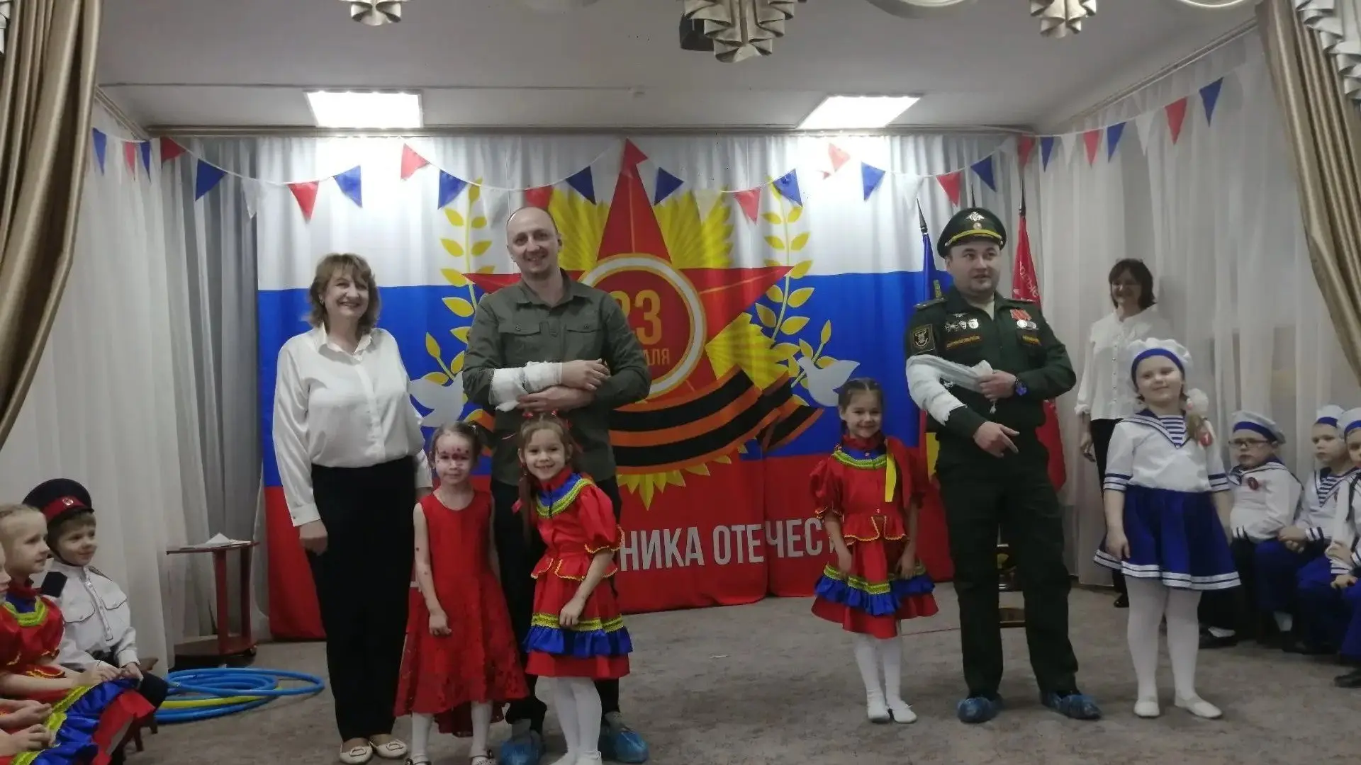 В преддверии Дня защитника Отечества в детском саду № 62 состоялось торжественное мероприятие. Оно началось с исполнения Государственного гимна Российской Федерации. Почётными гостями стали военнослужащие.