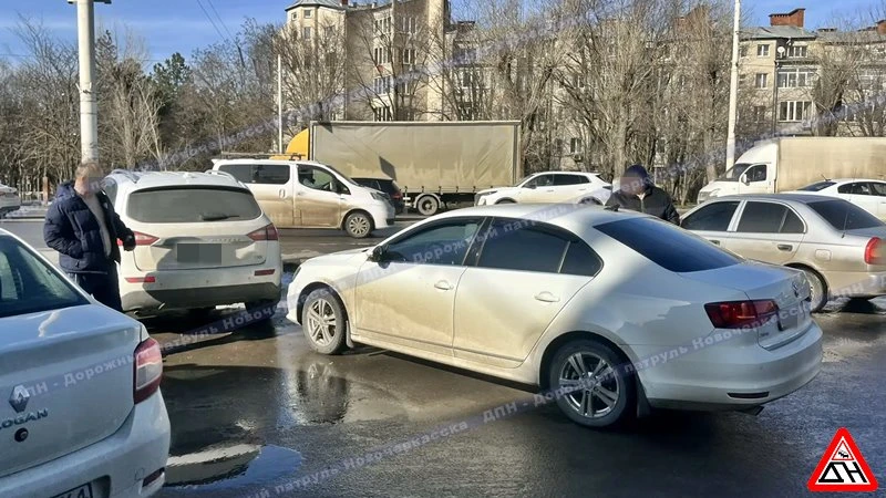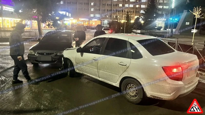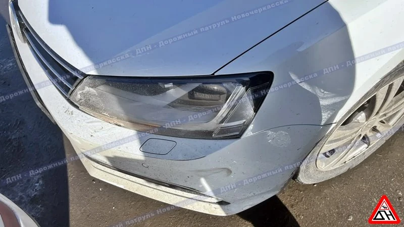 "Фольксваген" заезжал на парковочное место, его занесло на льду, и он ударил припаркованный на соседнем месте "Зотти".