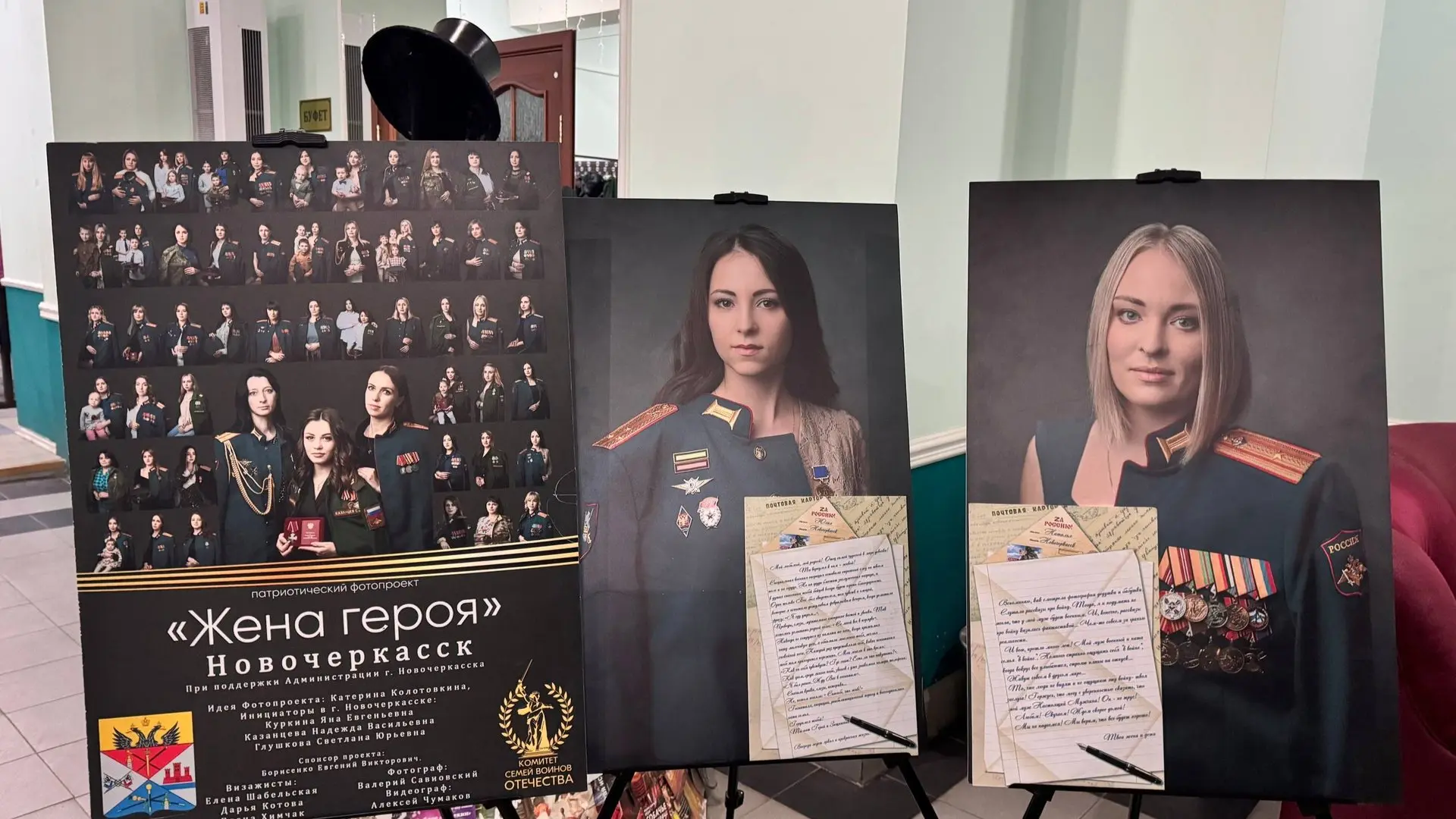 В фойе была организована выставка портретов «Жена героя», посвящённая женщинам, ожидающим своих близких с фронта.