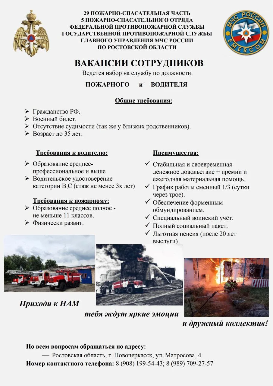В 29-ю пожарную часть ведется набор пожарных и водителей.