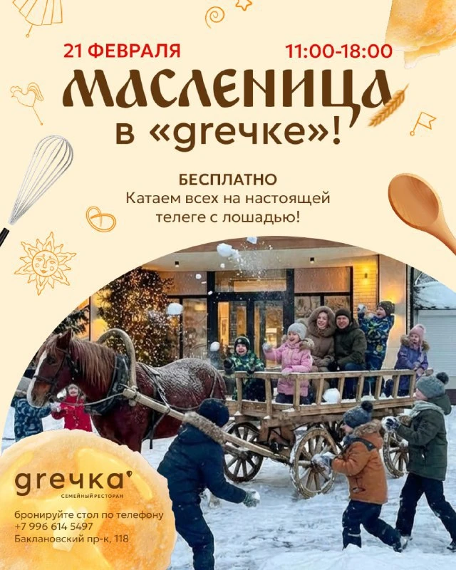 МАСЛЕНИЦА В «GREЧКЕ» | СУББОТА | 21 ФЕВРАЛЯ 🥞