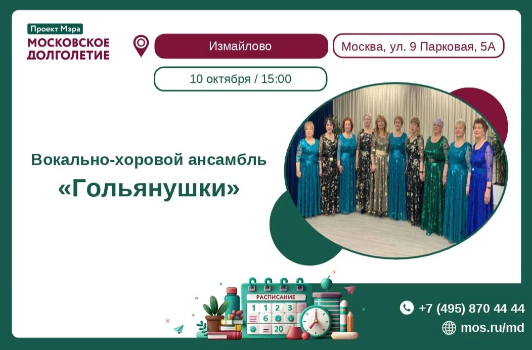 Центр «Московское долголетие» в районе Измайлово приглашает всех желающих на осенние творческие вечера. 10 и 11 октября здесь пройдут музыкальные концерты, которые подарят гостям теплое настроение и яркие впечатления.
