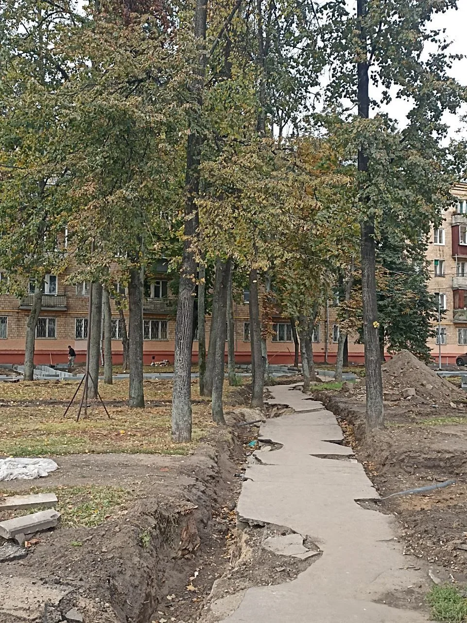 Рядом с метро «Первомайская» масштабные работы в сквере. Видно, что обновляют дорожки.