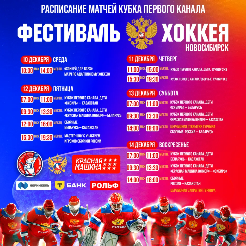 С 10 по 14 декабря Новосибирская область принимает Кубок первого канала по хоккею. В этом году турнир превратился в Фестиваль хоккея, который объединит сразу несколько соревнований.