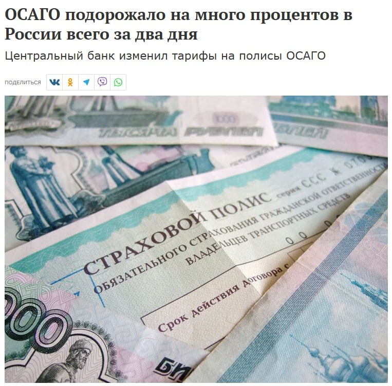 ОСАГО в ряде регионов за два дня подорожало до 60%.