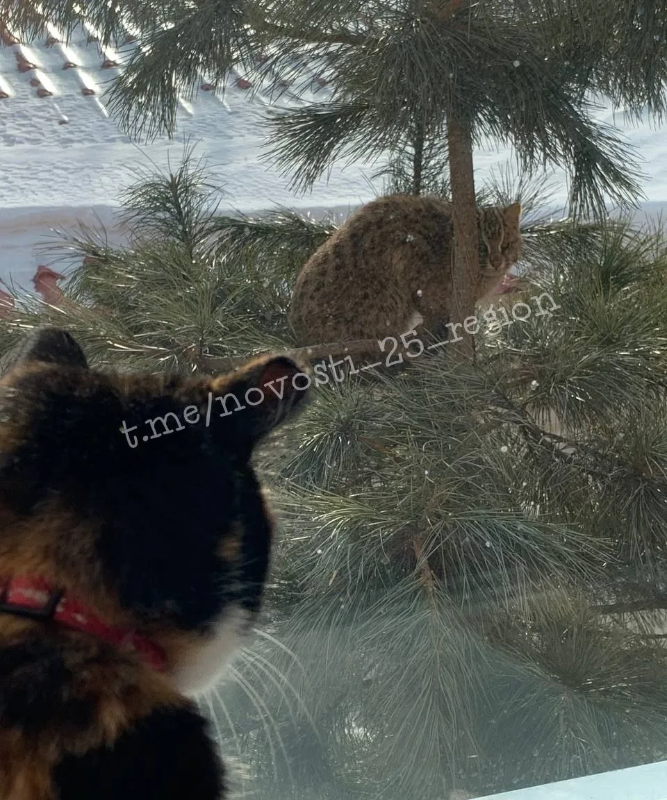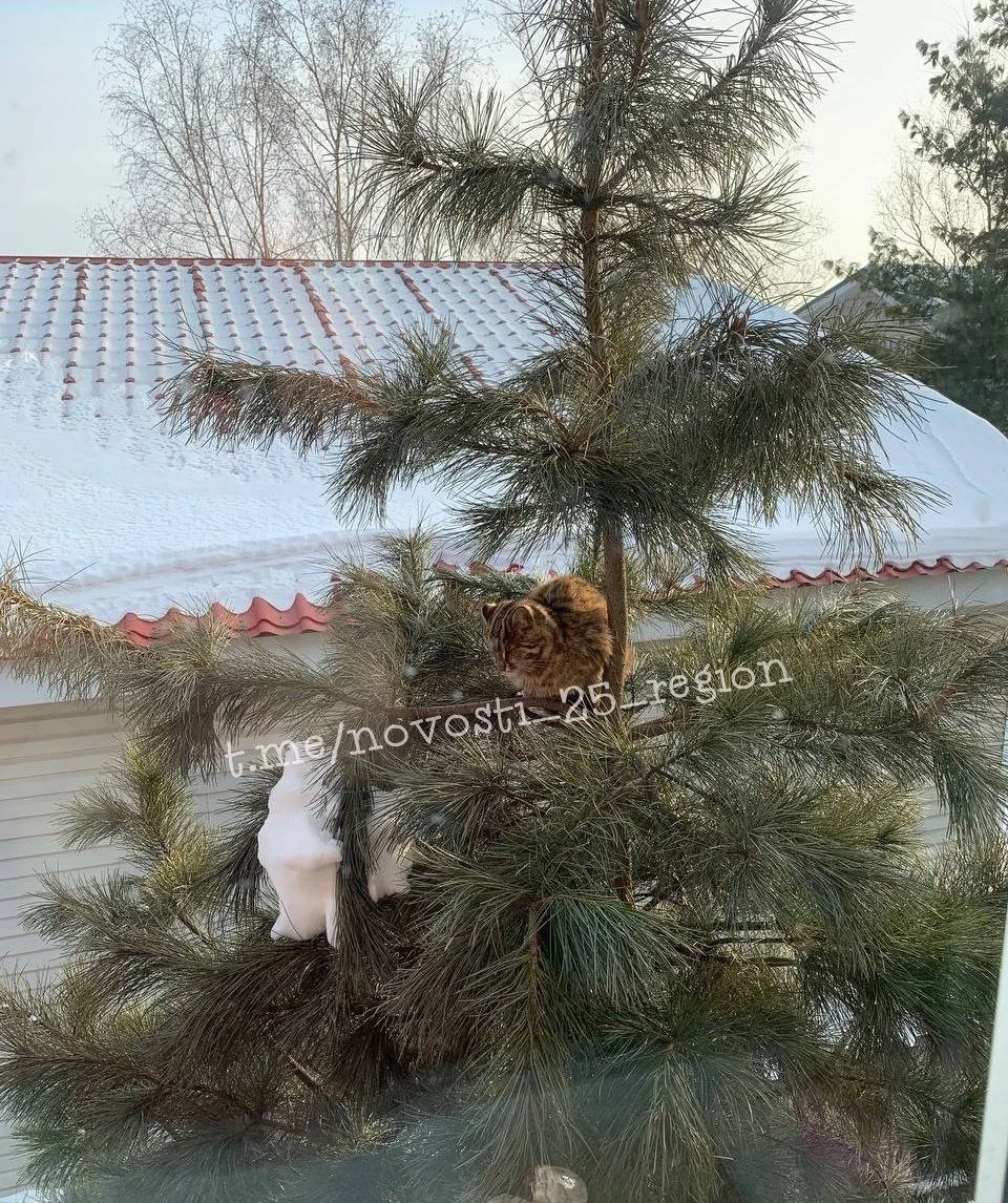 👍 А вот такой красавец посетил нас в п. Трудовое на зимних выходных. Прибежал из леса видно ночью когда машин мало, а тут наш пёс…, пришлось бедолаге до утра на кедре сидеть. Но наша кошка была заинтригована лесным принцем))
