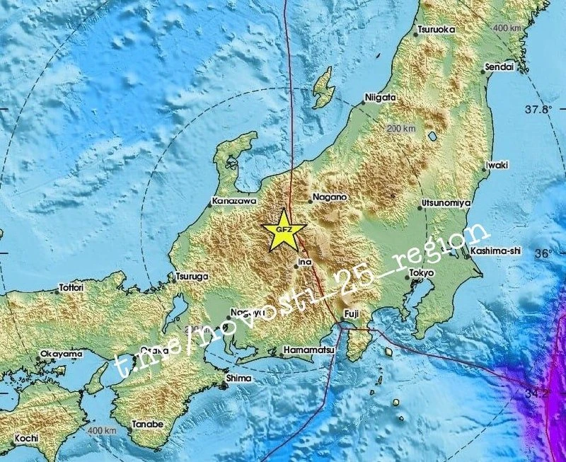 ⚡️⚡️ Очередное землетрясение сегодня произошло в Японии, в этот раз ближе к Японскому морю.