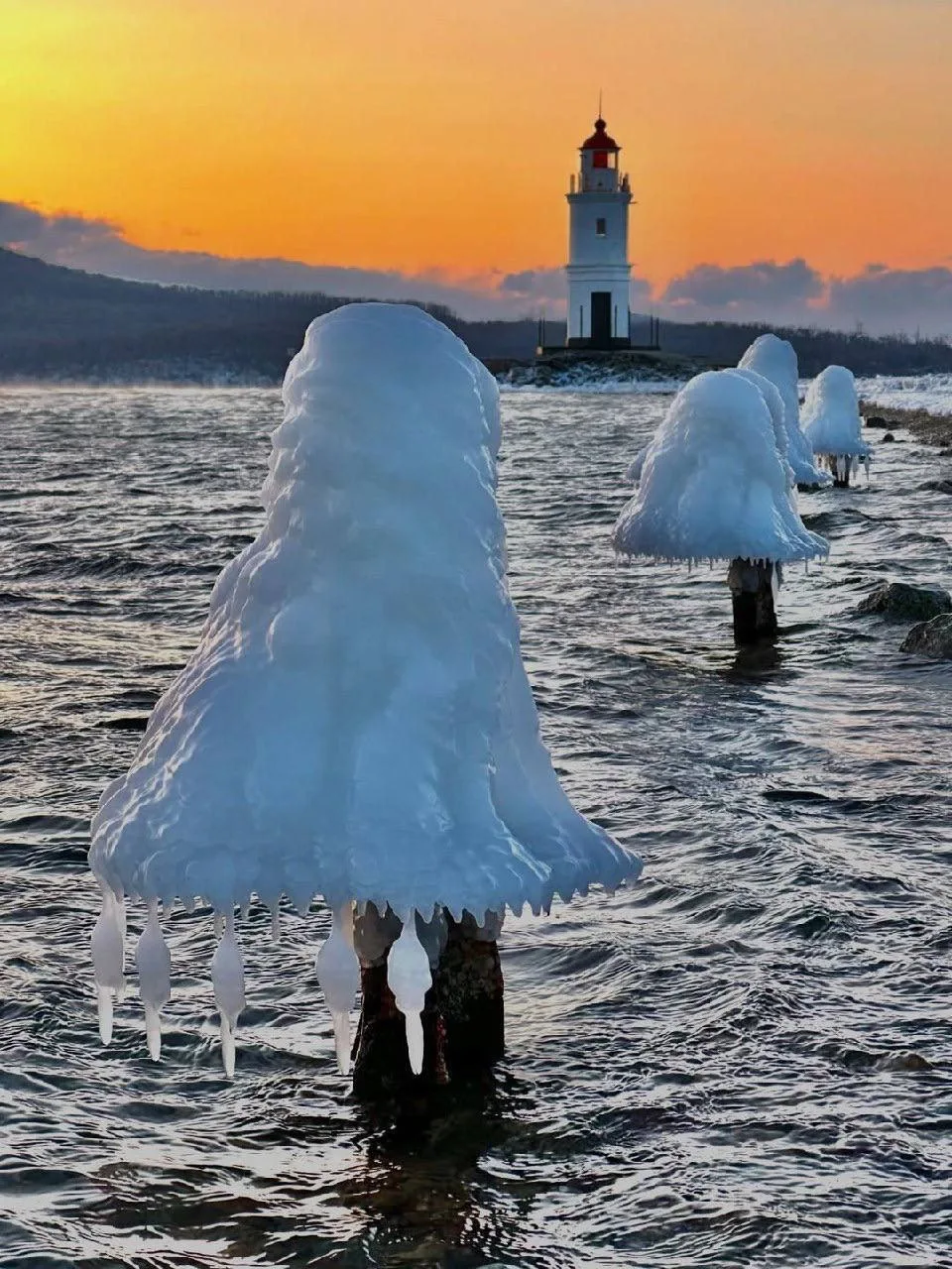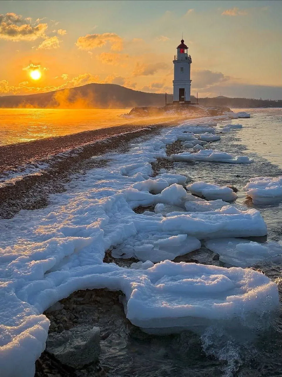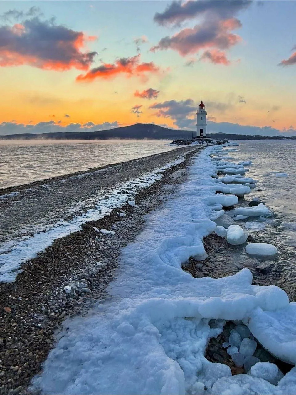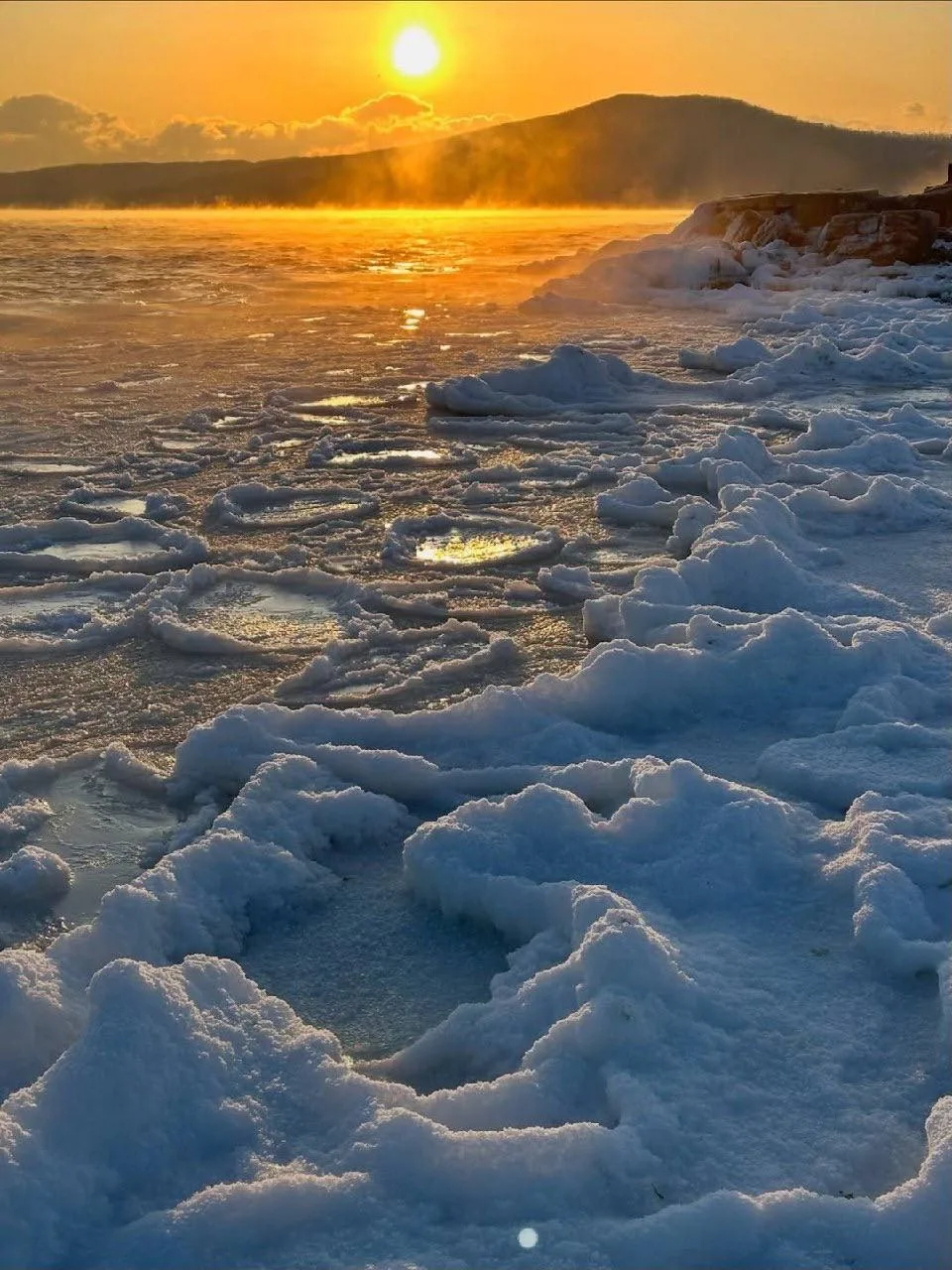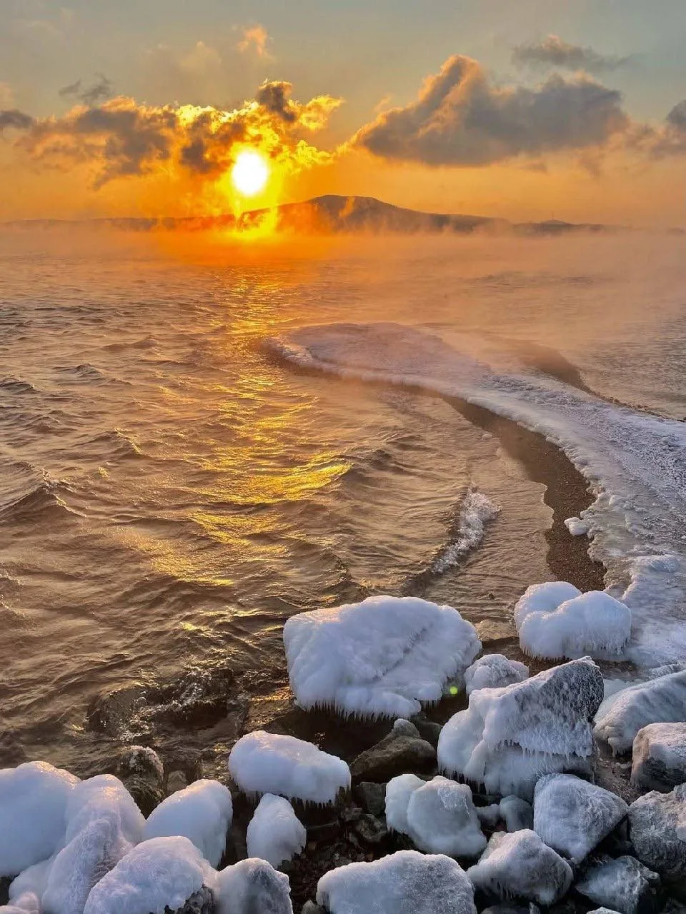 Самые холодные рассветы Владивостока превращают море в волшебный туман.