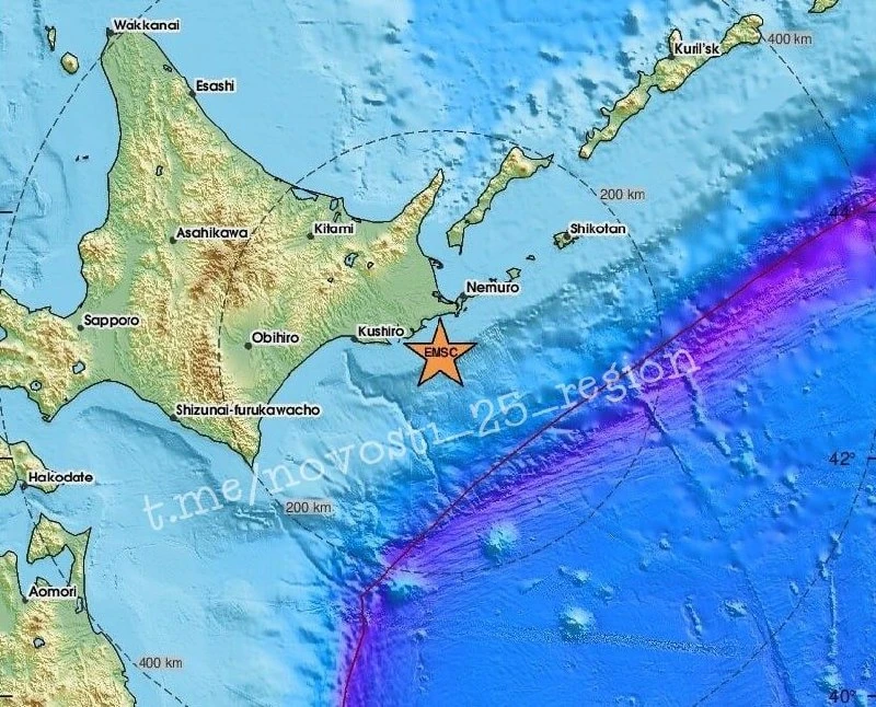 Землетрясение магнитудой 5.6 произошло у побережья острова Хоккайдо в 01:13 по московскому времени. Очаг залегал на глубине 12 км. Эпицентр располагался в 66 км от Немуро. Подземные толчки ощущались на Хоккайдо (Япония) и на ряде Курильских островов (Россия).