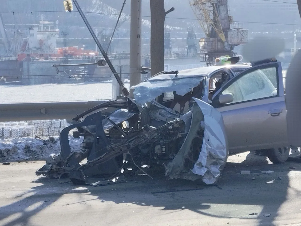 Автобус выбросило с проезжей части на газон, а водительницу легковушки зажало в салоне, на место сразу же прибыли спасатели ГО и ЧС Находки, ГАИ, а так же медики.
