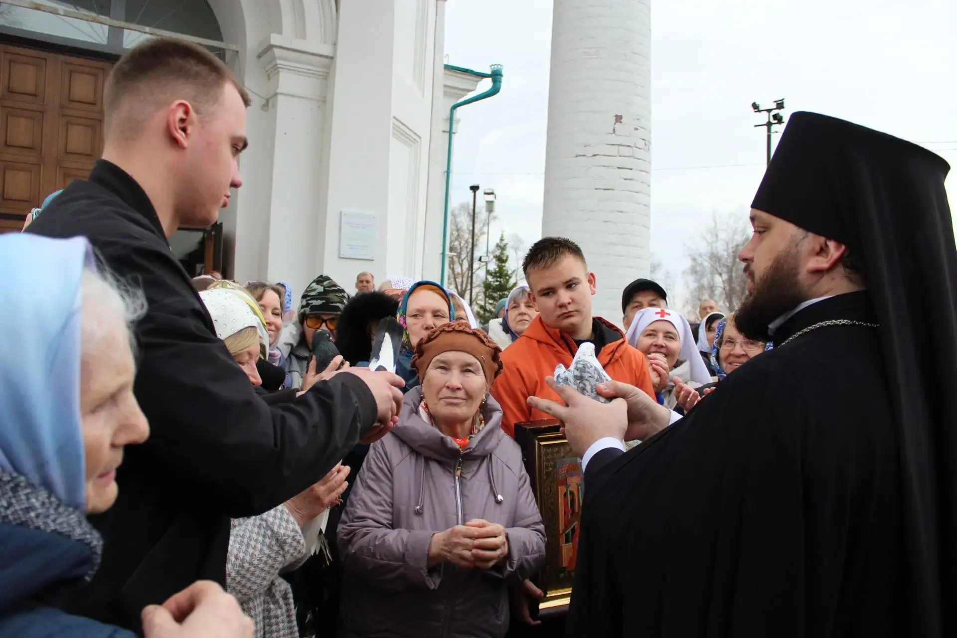В Спасском соборе Елабуги прошла праздничная служба в честь Благовещения. Несмотря на прохладную погоду, в храме собралось много людей.