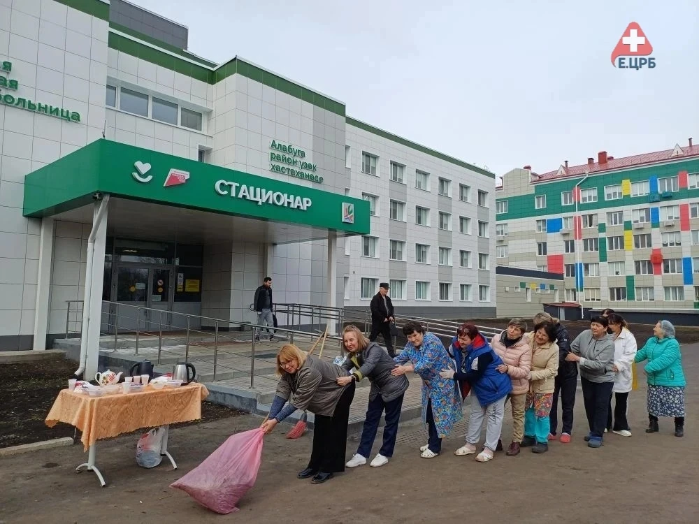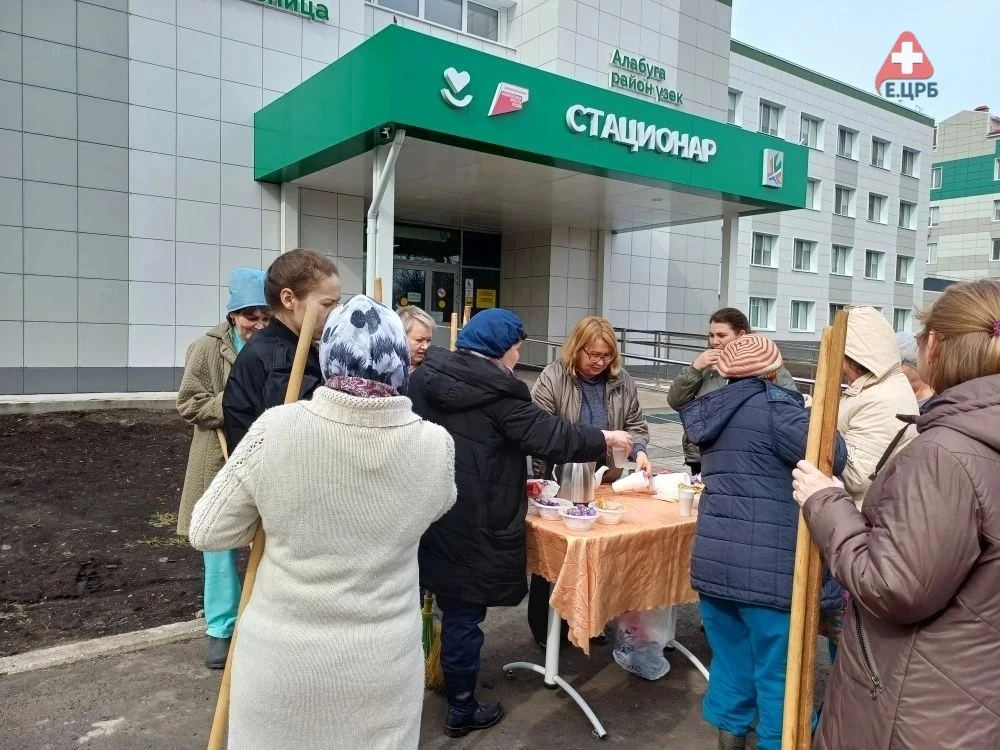Сегодня в Елабужской ЦРБ прошёл большой весенний средник. Сотрудники сменили белые халаты на рабочую одежду и вышли наводить порядок на территории больничного городка.