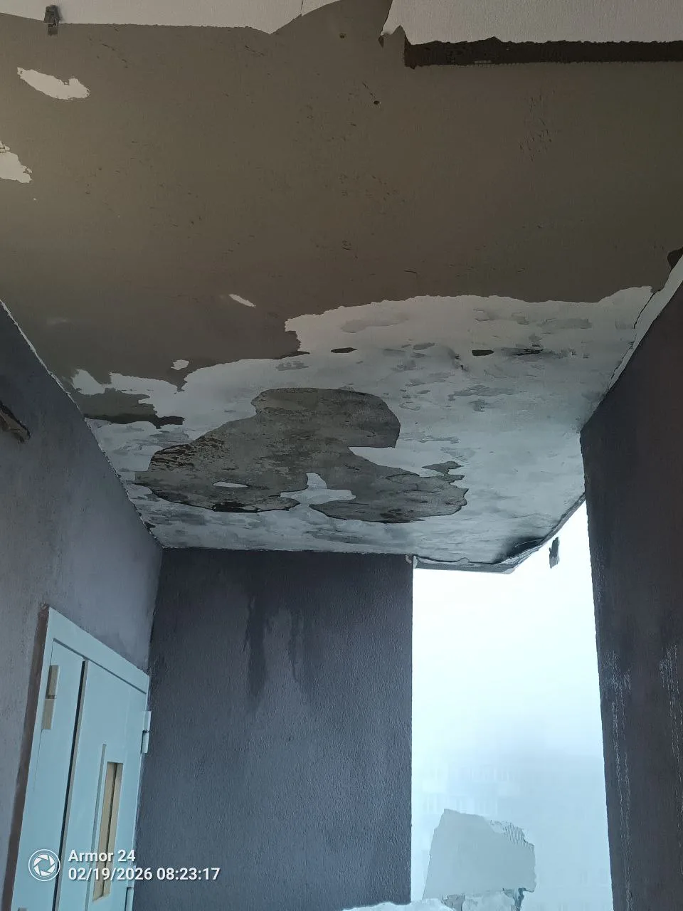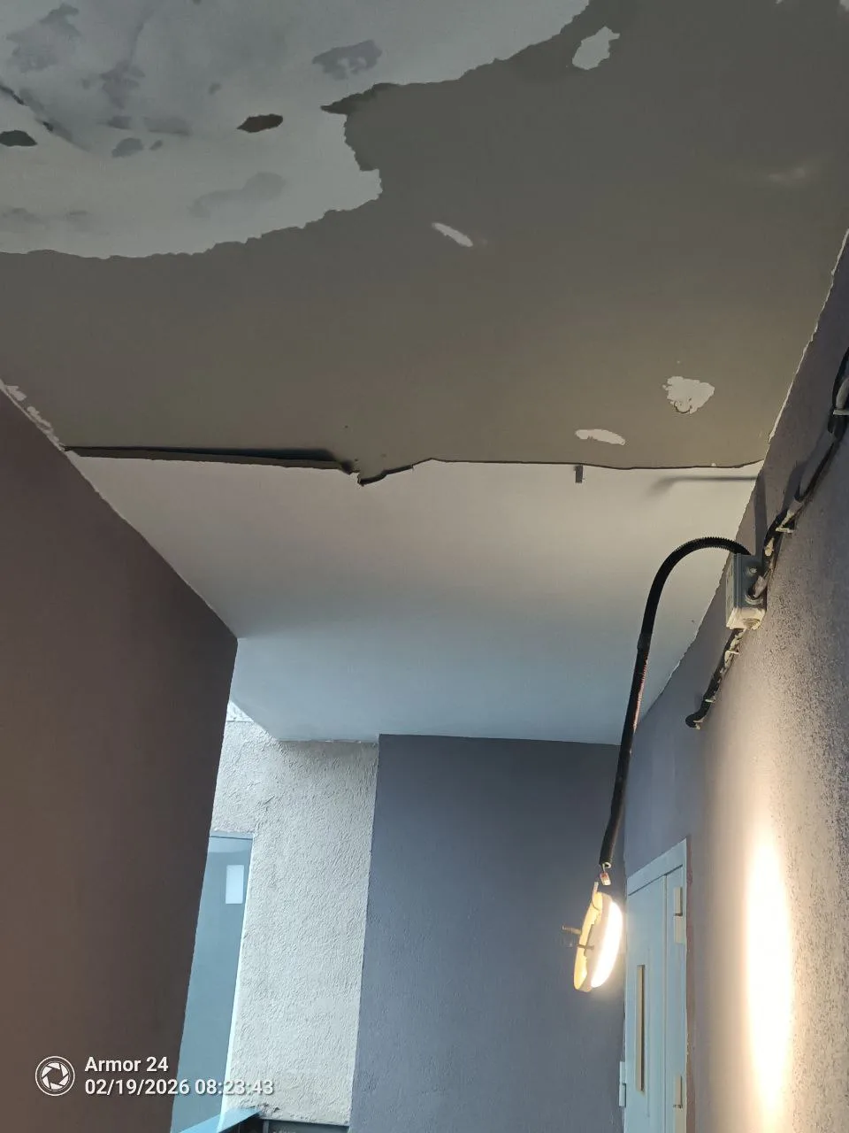 👀Сегодня ночью упала штукатурка на переходном балконе это после ремонта в декабре,в ЖЭК заявку написал но ответ не очень удовлетворил фото есть.Комсомольский б-р 64 дом 9 этаж