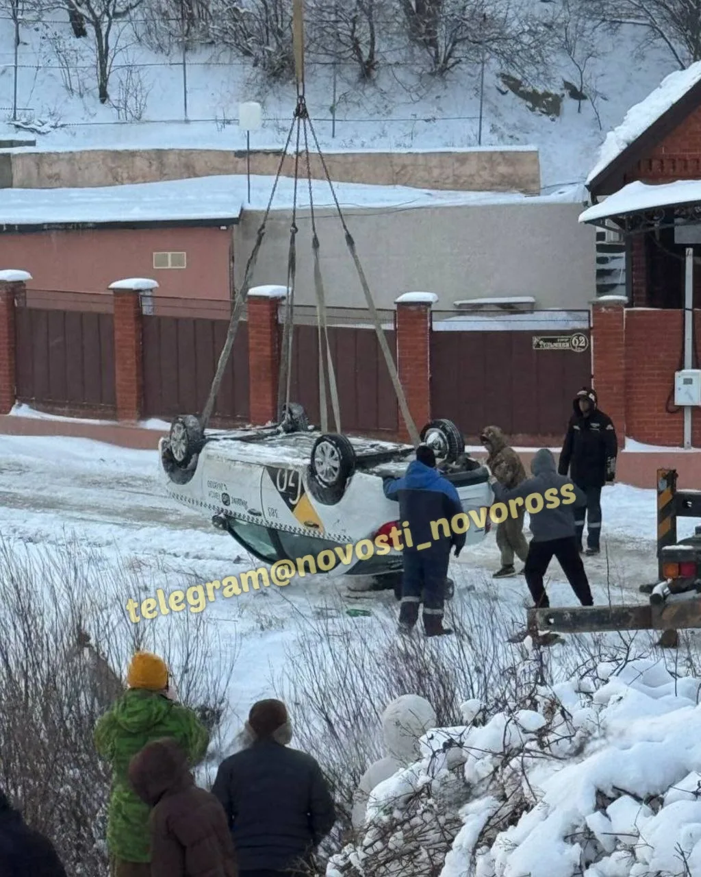 Такси улетело в речку на ул. Васенко. Вытянули.