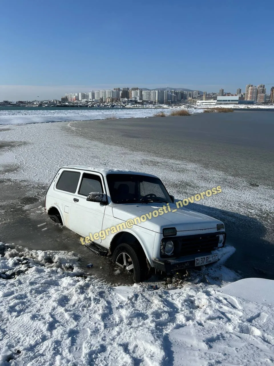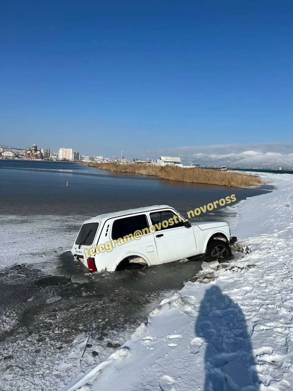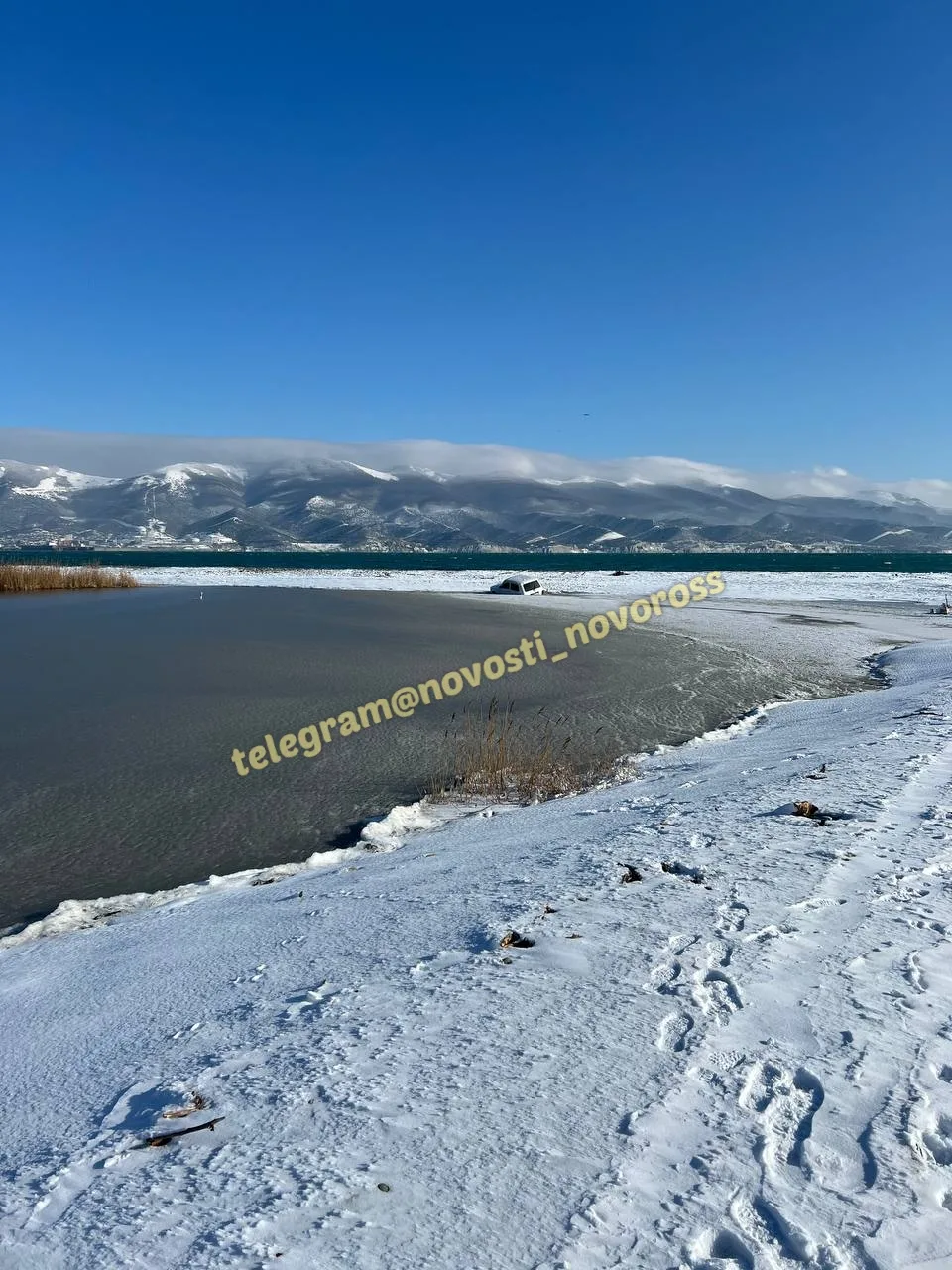 Машина провалилась в воду на Суджукской косе в Новоросийске