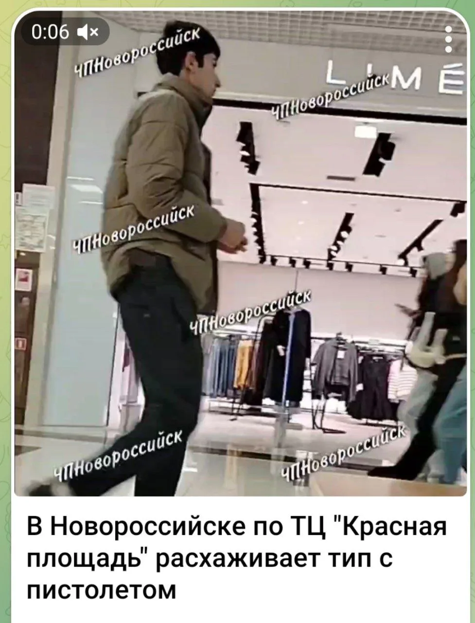 ‼️В ходе мониторинга сети Интернет сотрудниками полиции выявлена видеозапись, на которой запечатлено, как мужчина находится в одном из торговых центров Новороссийска с предметом, конструктивно схожим с пистолетом.
