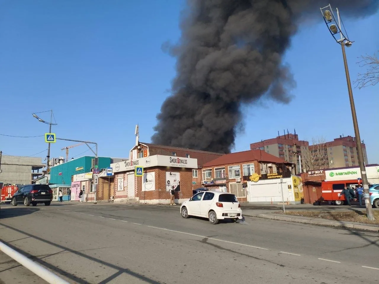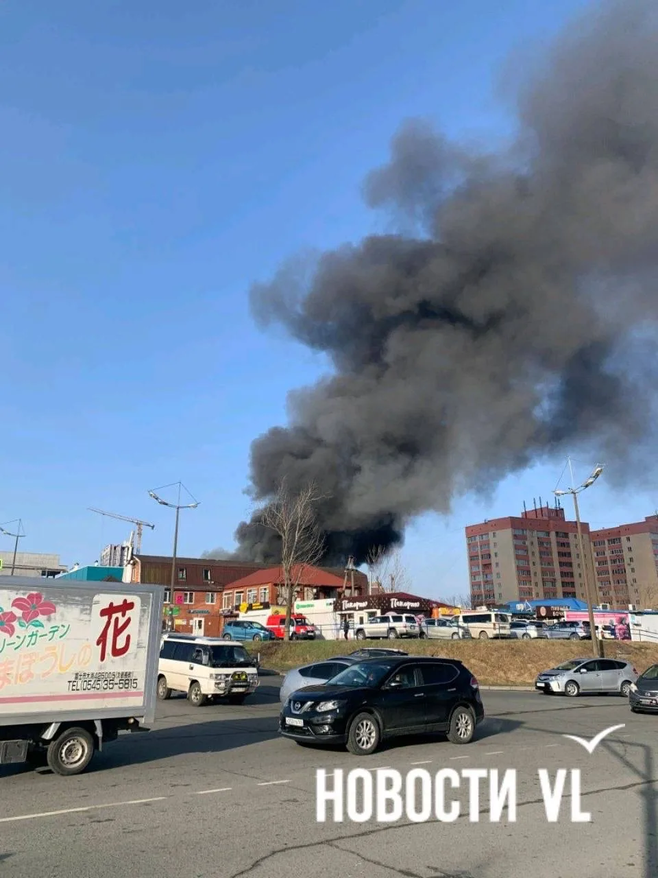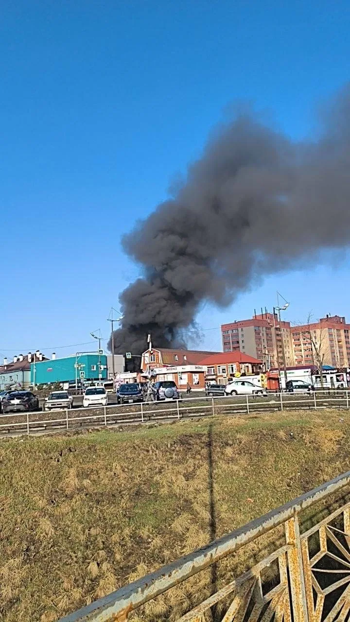 🔥На Чуркине вспыхнул серьёзный пожар на рынке возле Детского парка, над городом поднялся высокий столб чёрного дыма.