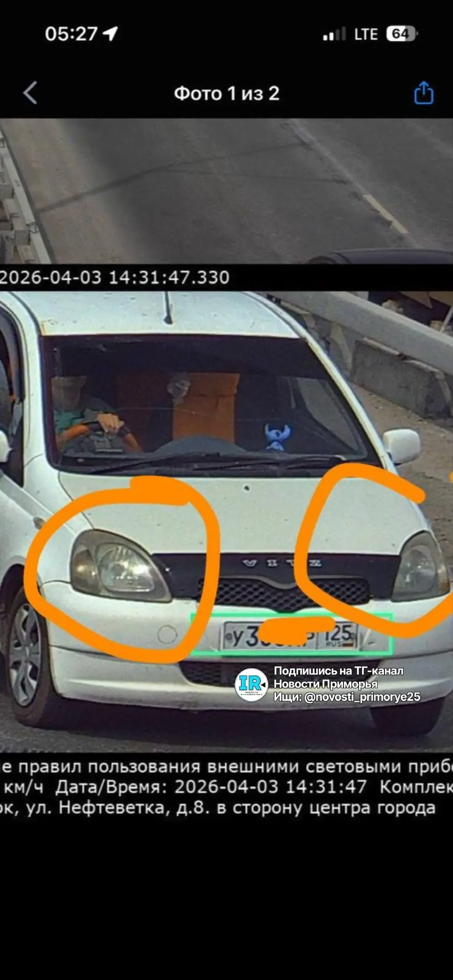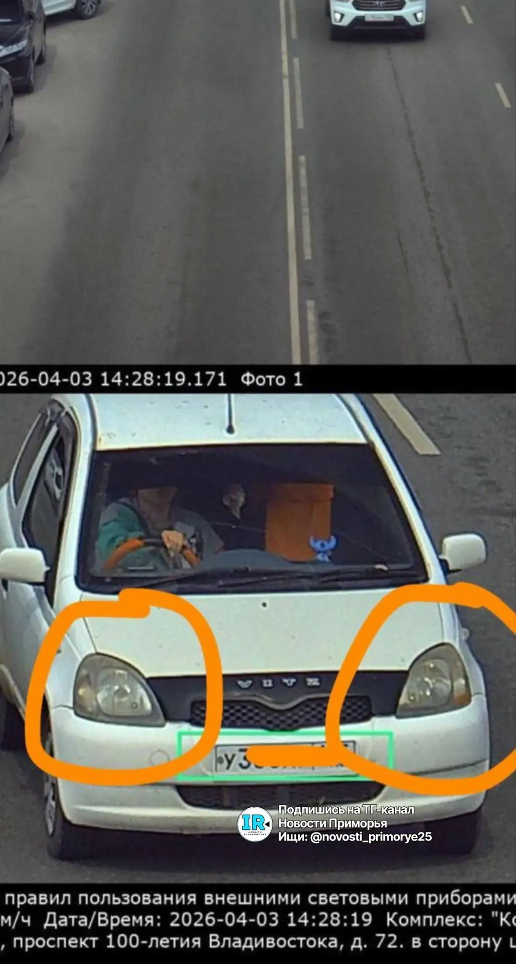 Жительница Владивостока жалуется на несправедливый штраф на Некрасовском путепроводе. Она утверждает, что фары горят и это видно на фото, но при этом пришел штраф.