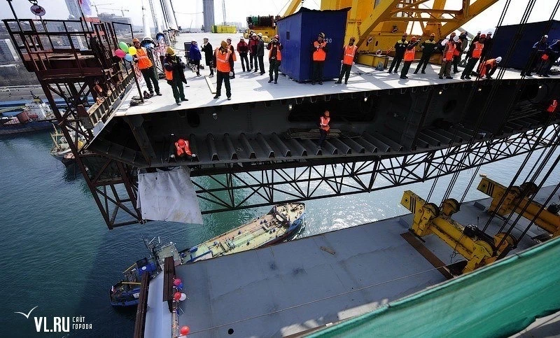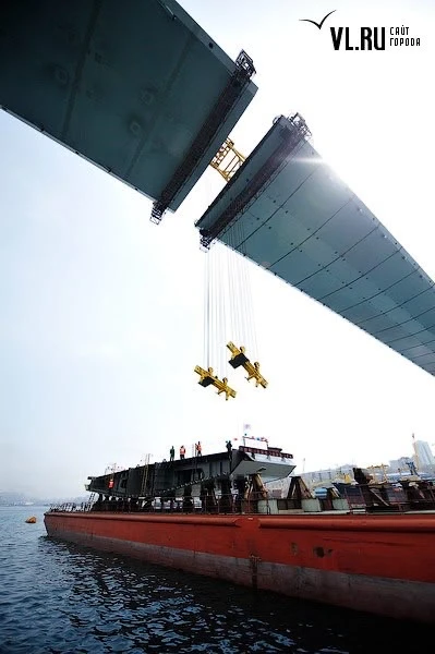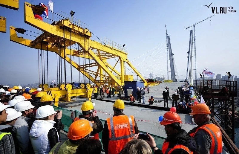 14 апреля в 2012 году рабочие подняли последнюю замковую панель длиной 7 метров и весом 135 тонн - «золотое звено» одного из пяти крупнейших вантовых мостов в мире.