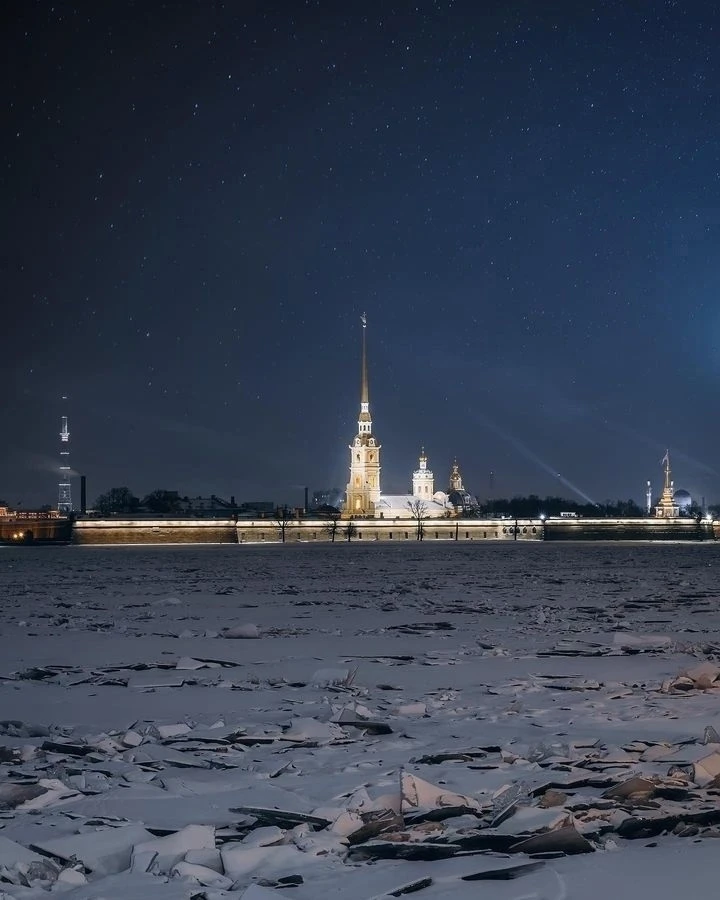 🌃 Ночной вид с Дворцовой набережной на Петропавловский собор